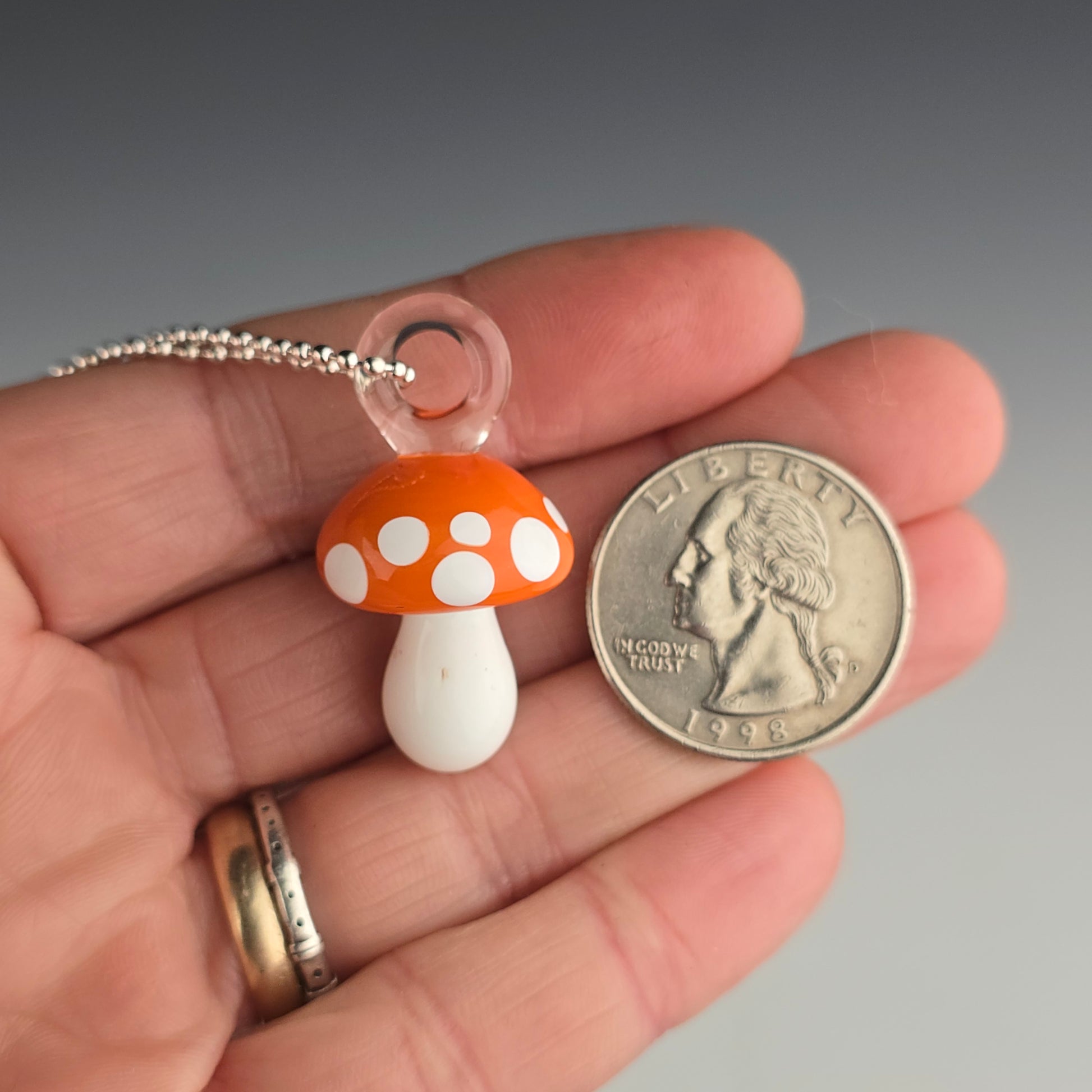 Small Orange glass mushroom pendant. See photos for size reference.