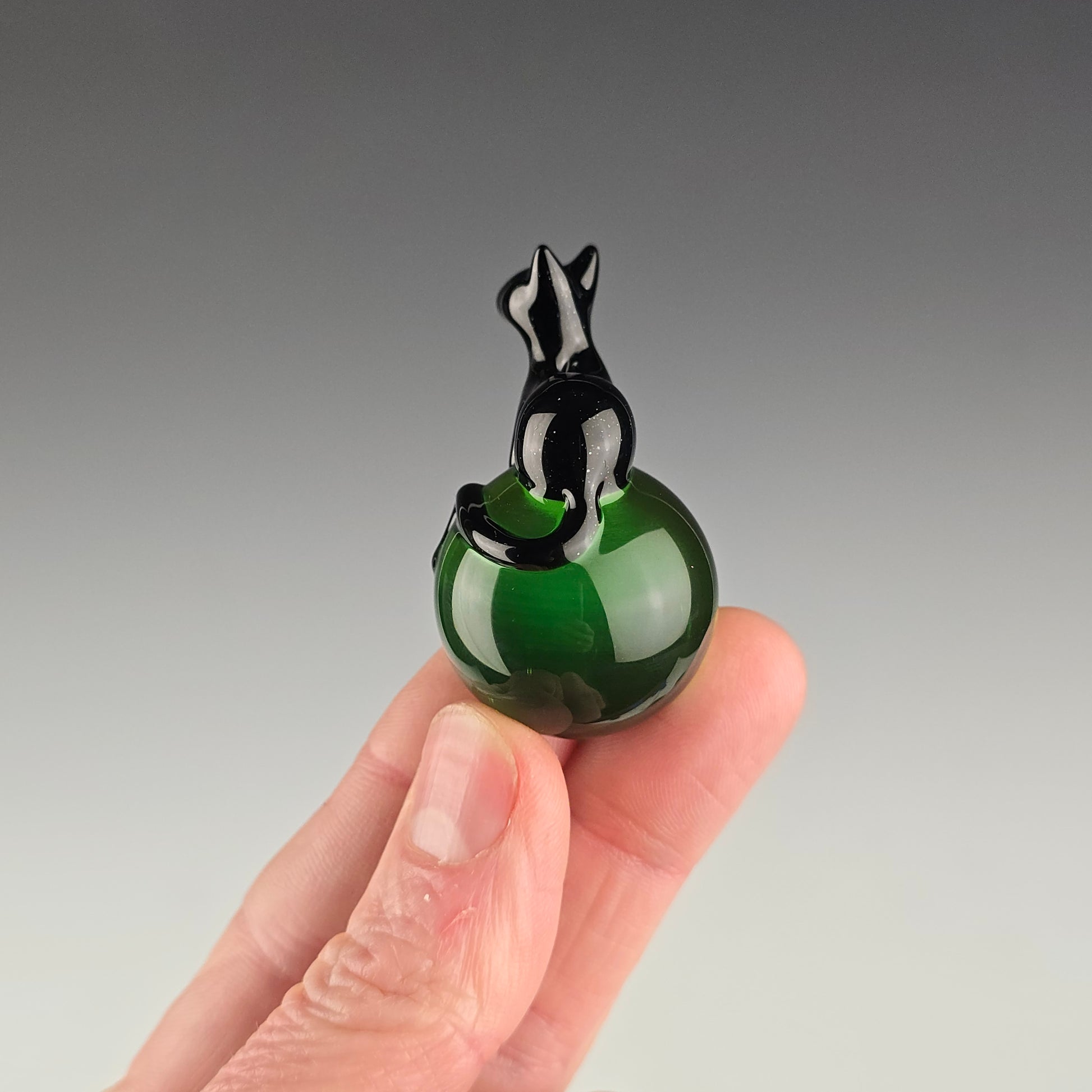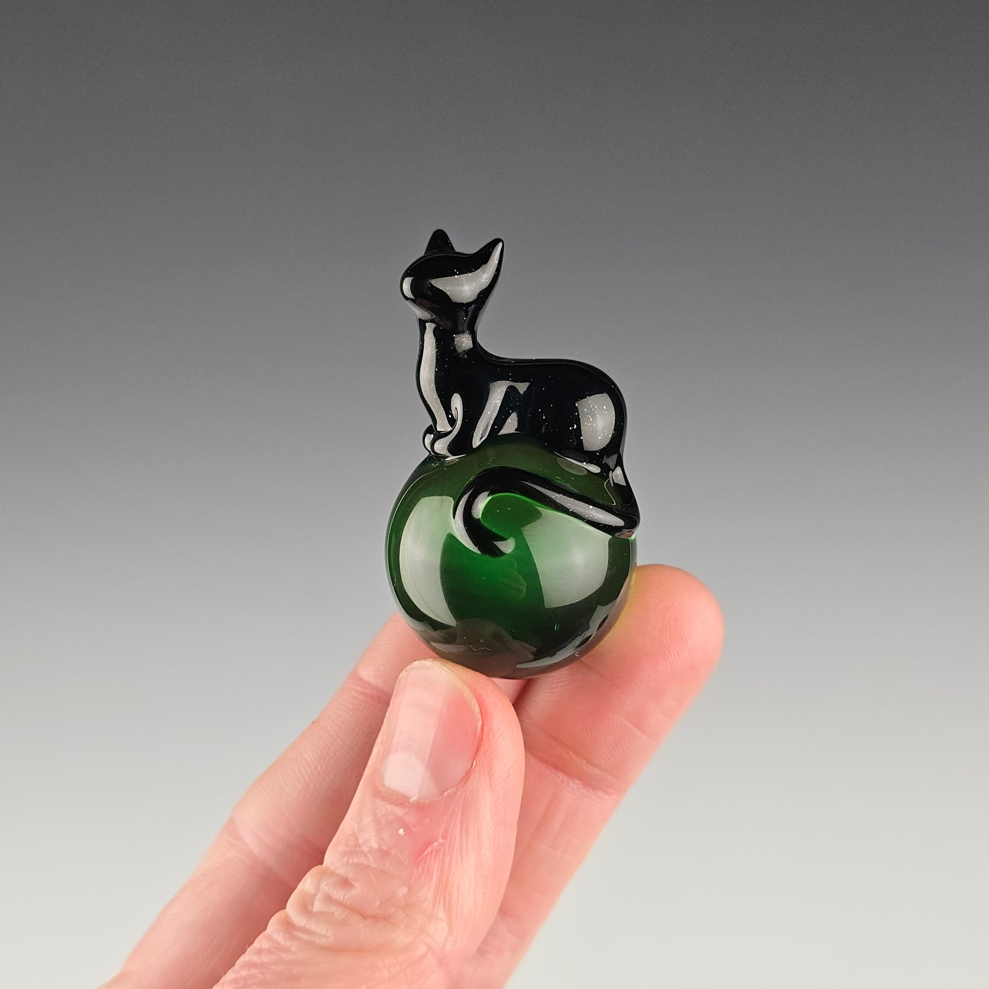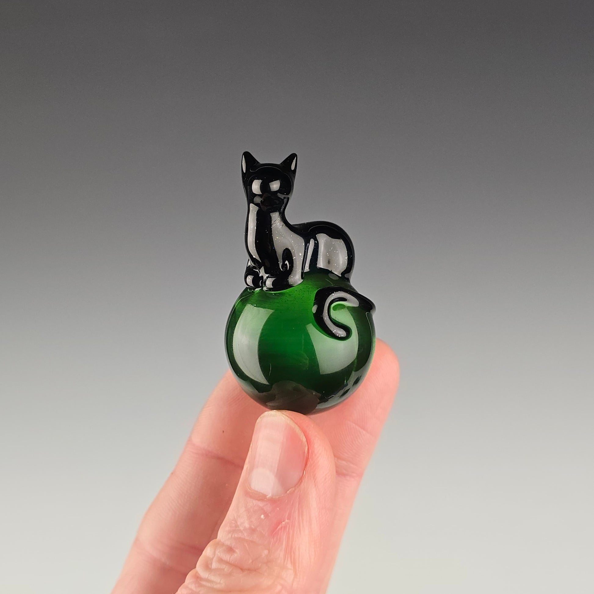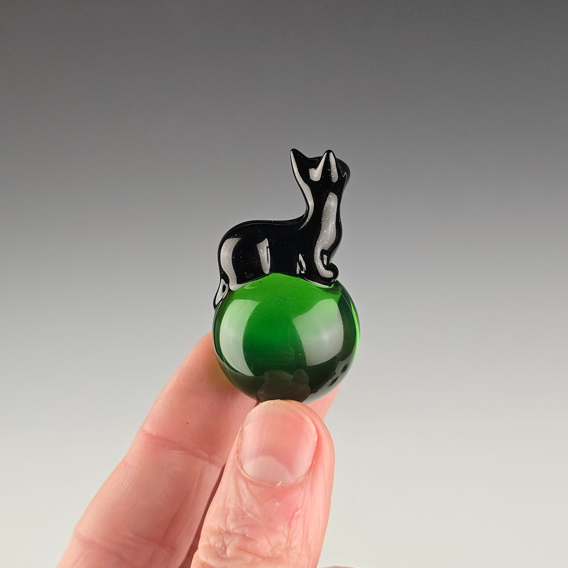 This 25.5mm Meowble is made with Glass Alchemy's Crippy and has an Onyx Kitty loafing on it.