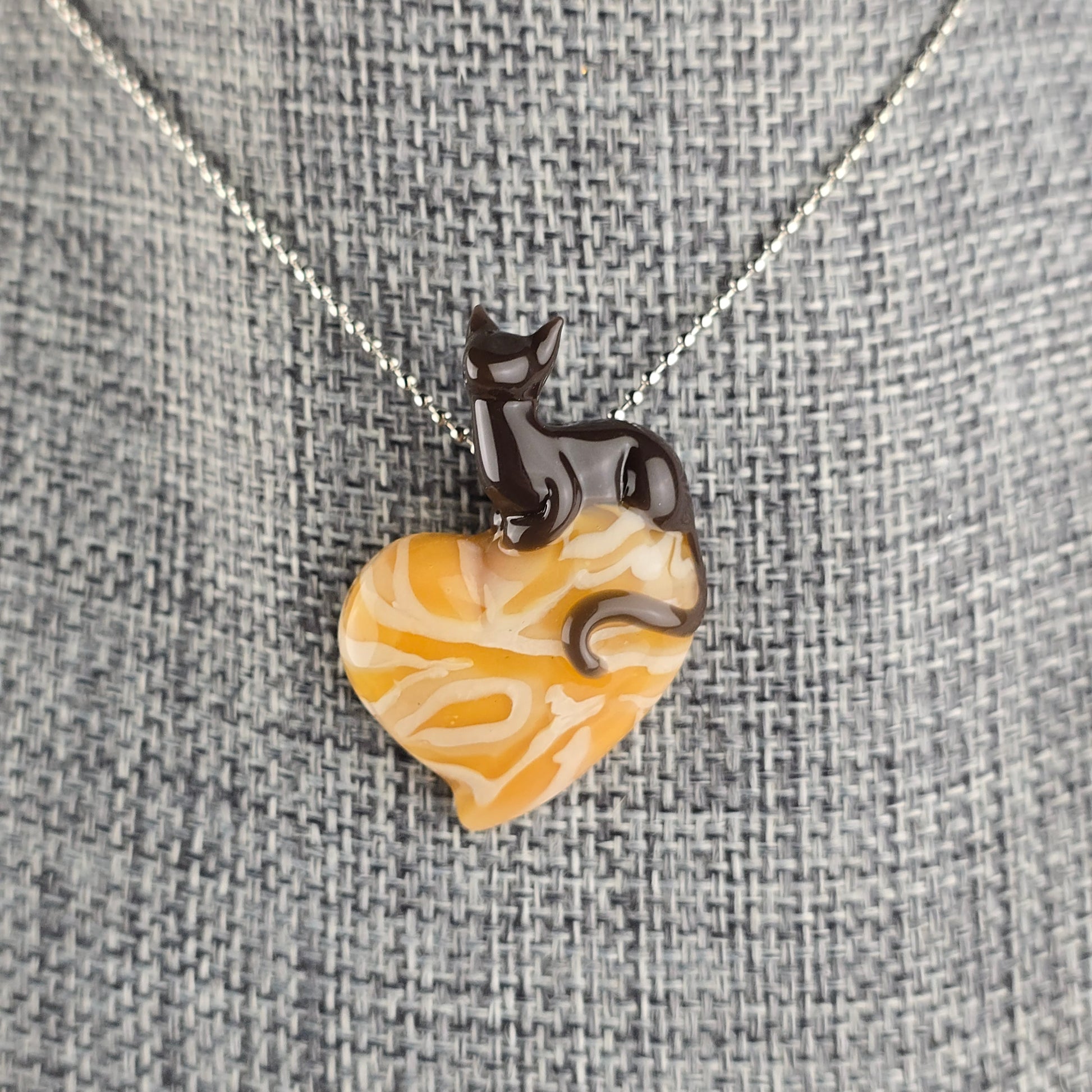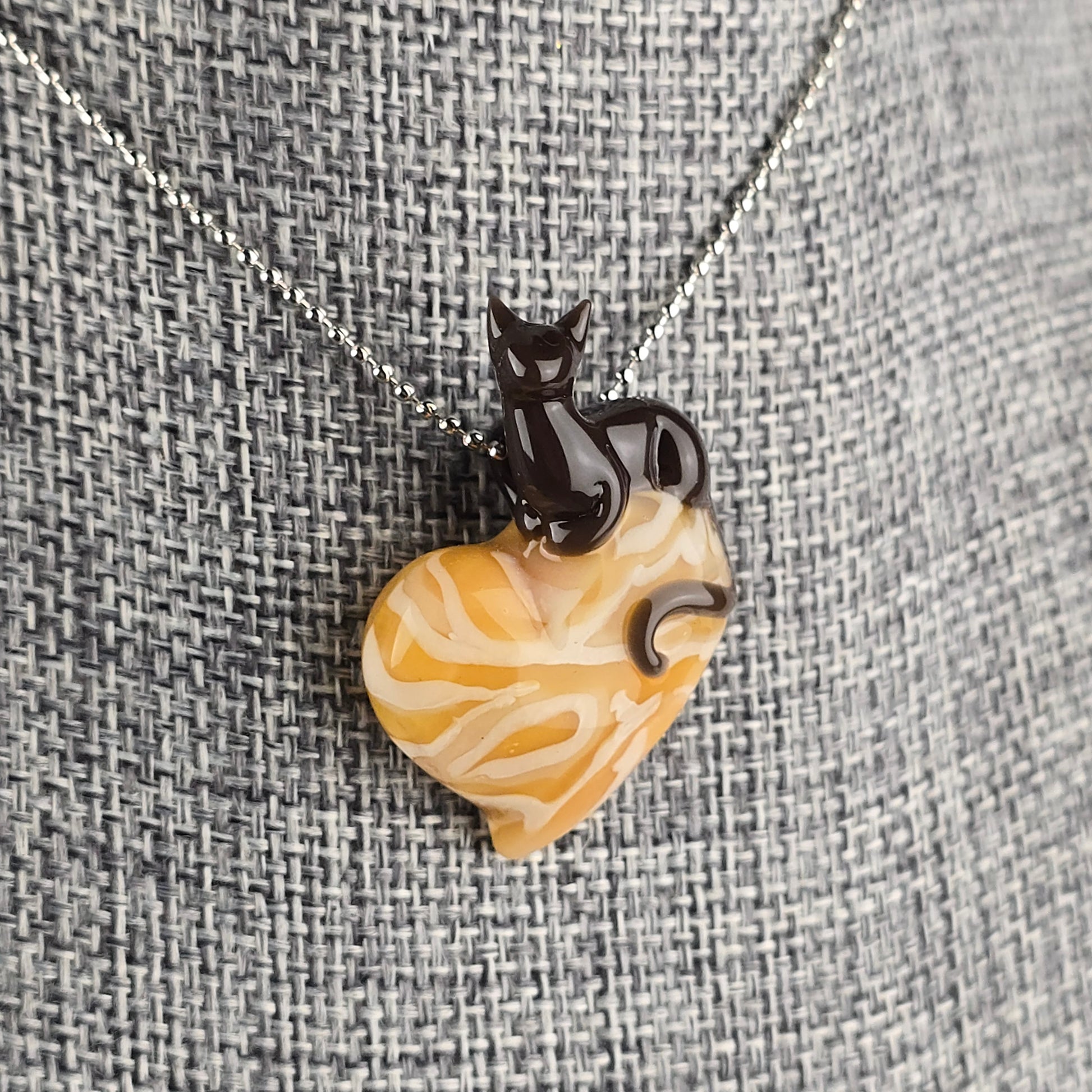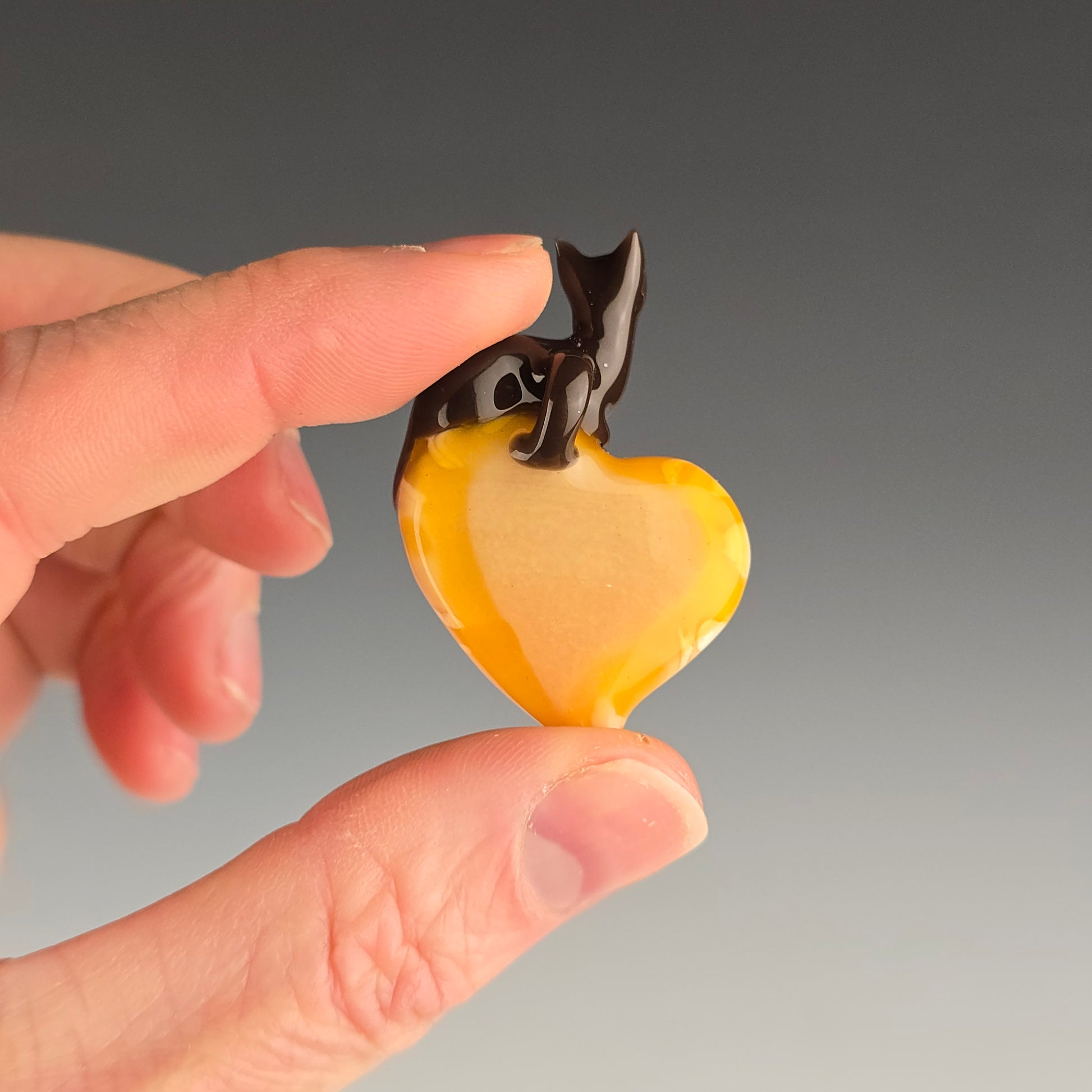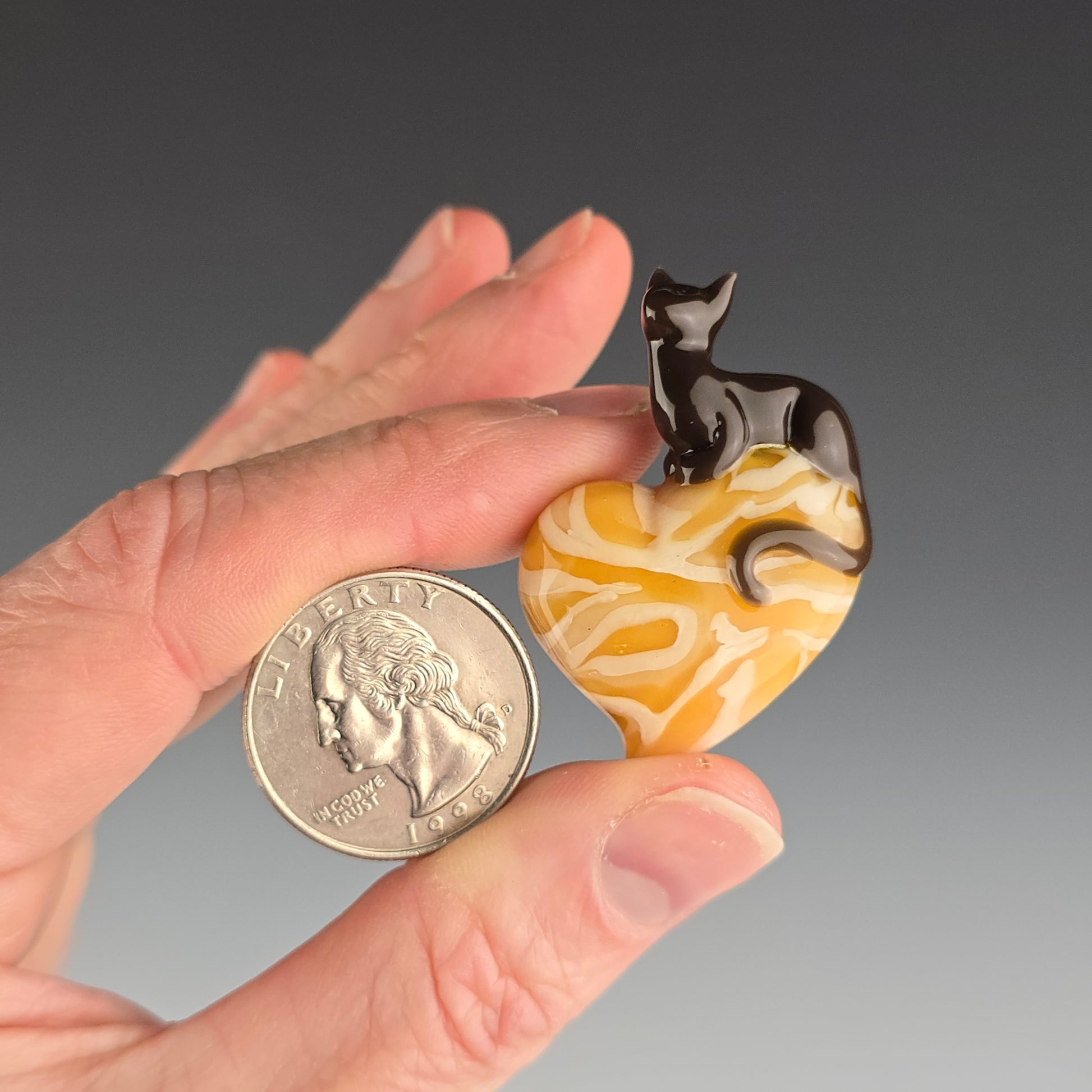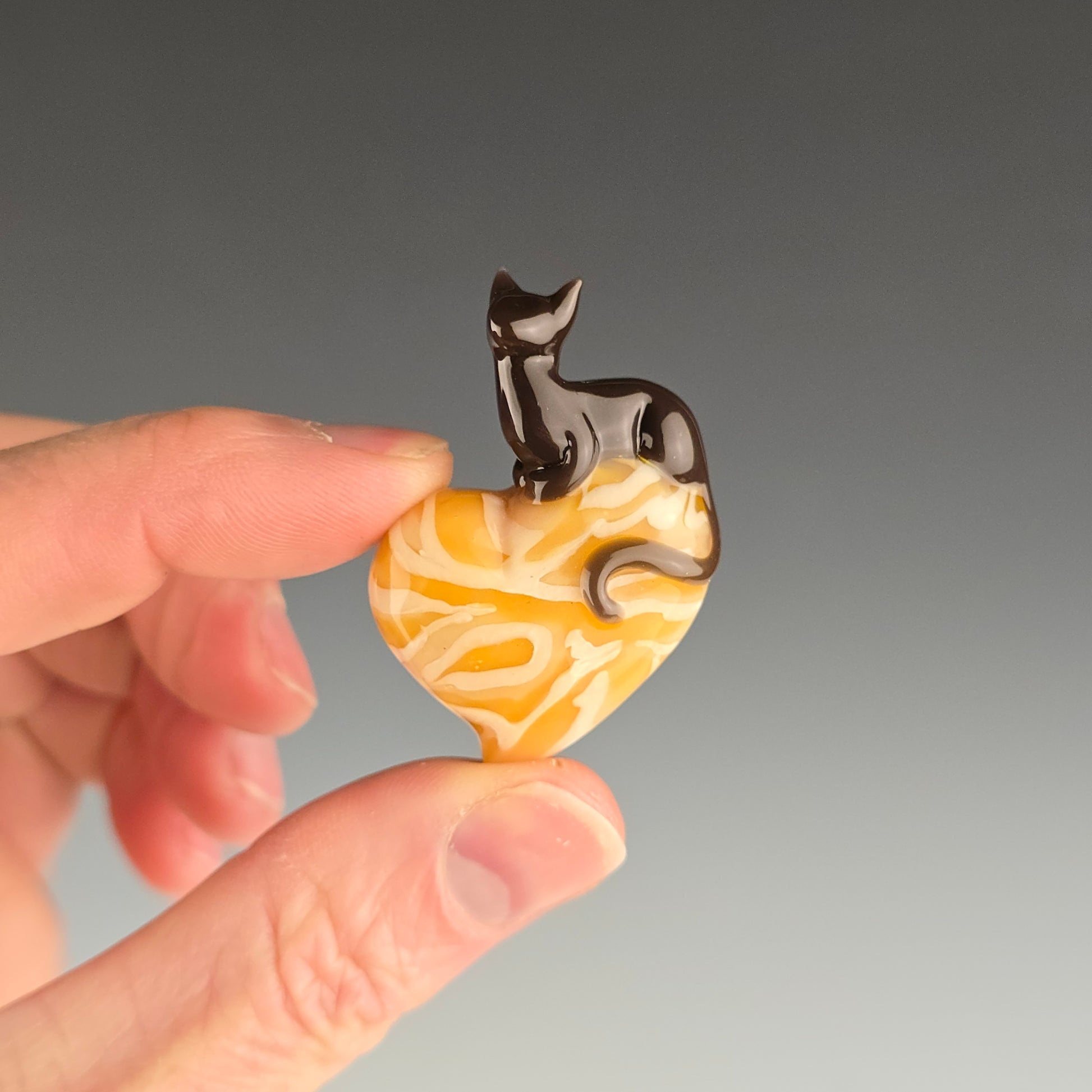 Grizzly Brown loaf on top of a heart with my signature Orange Tabby pattern. See photos for size reference.
