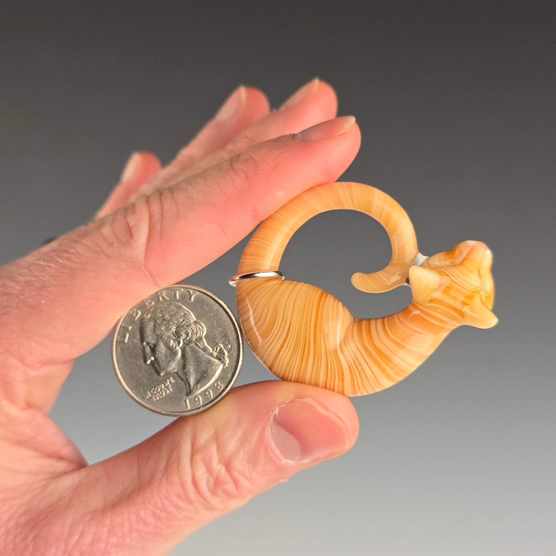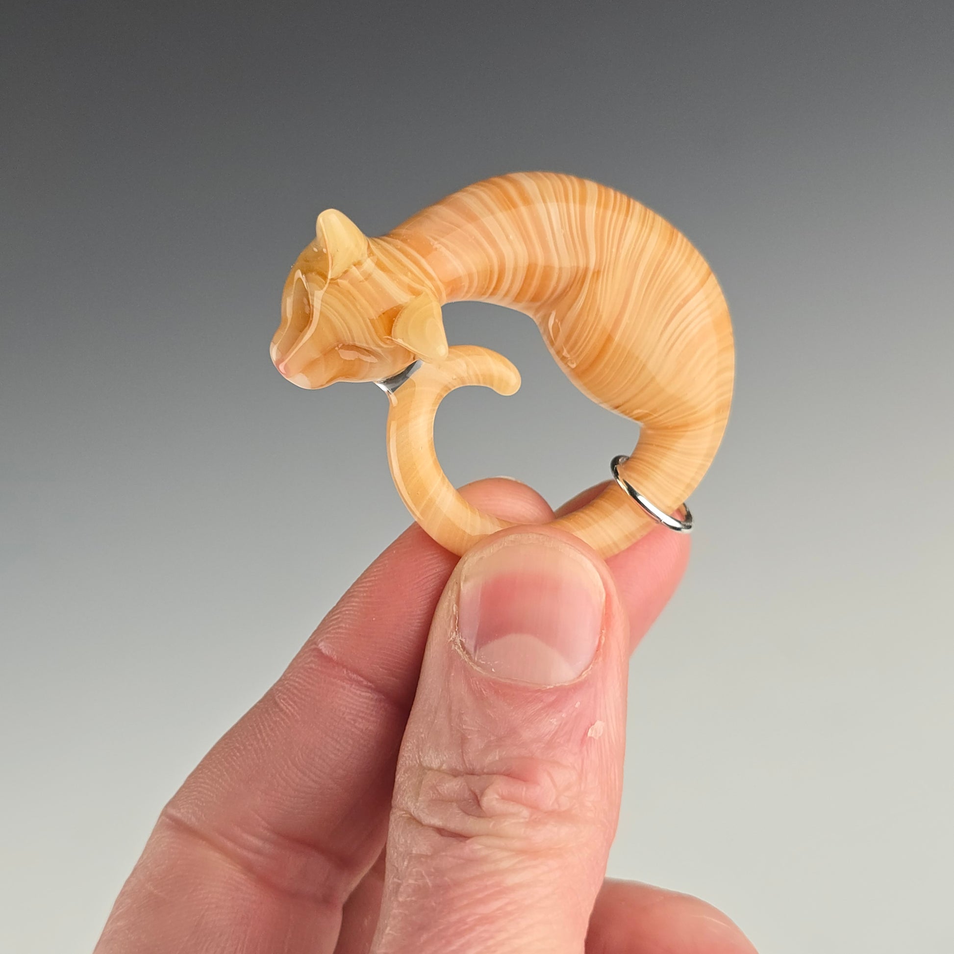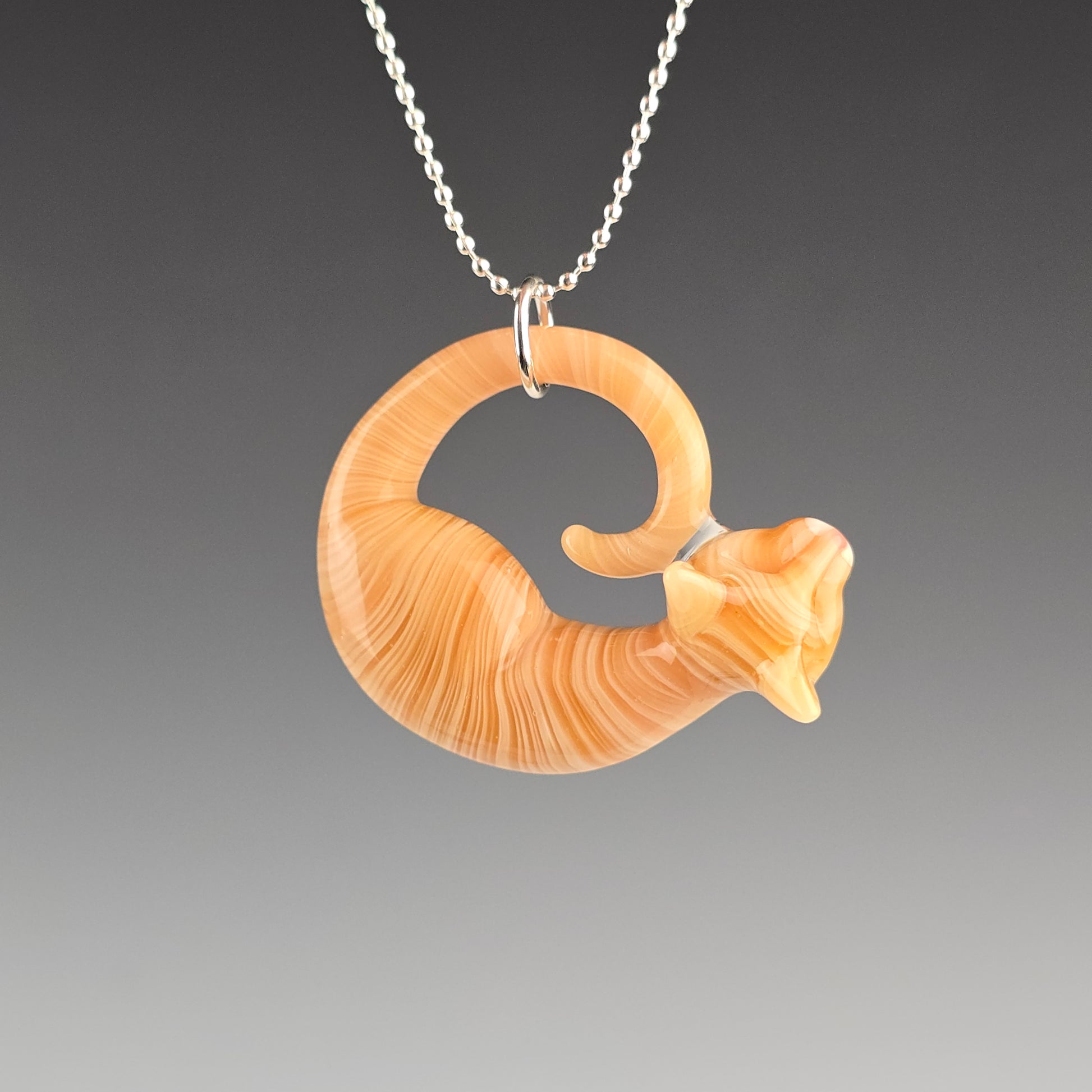 Made with my signature Orange Tabby prep, this regular sized sleeping kitty has a pink nose. See photos for size reference. Pendant comes signed and dated with a titanium pen.