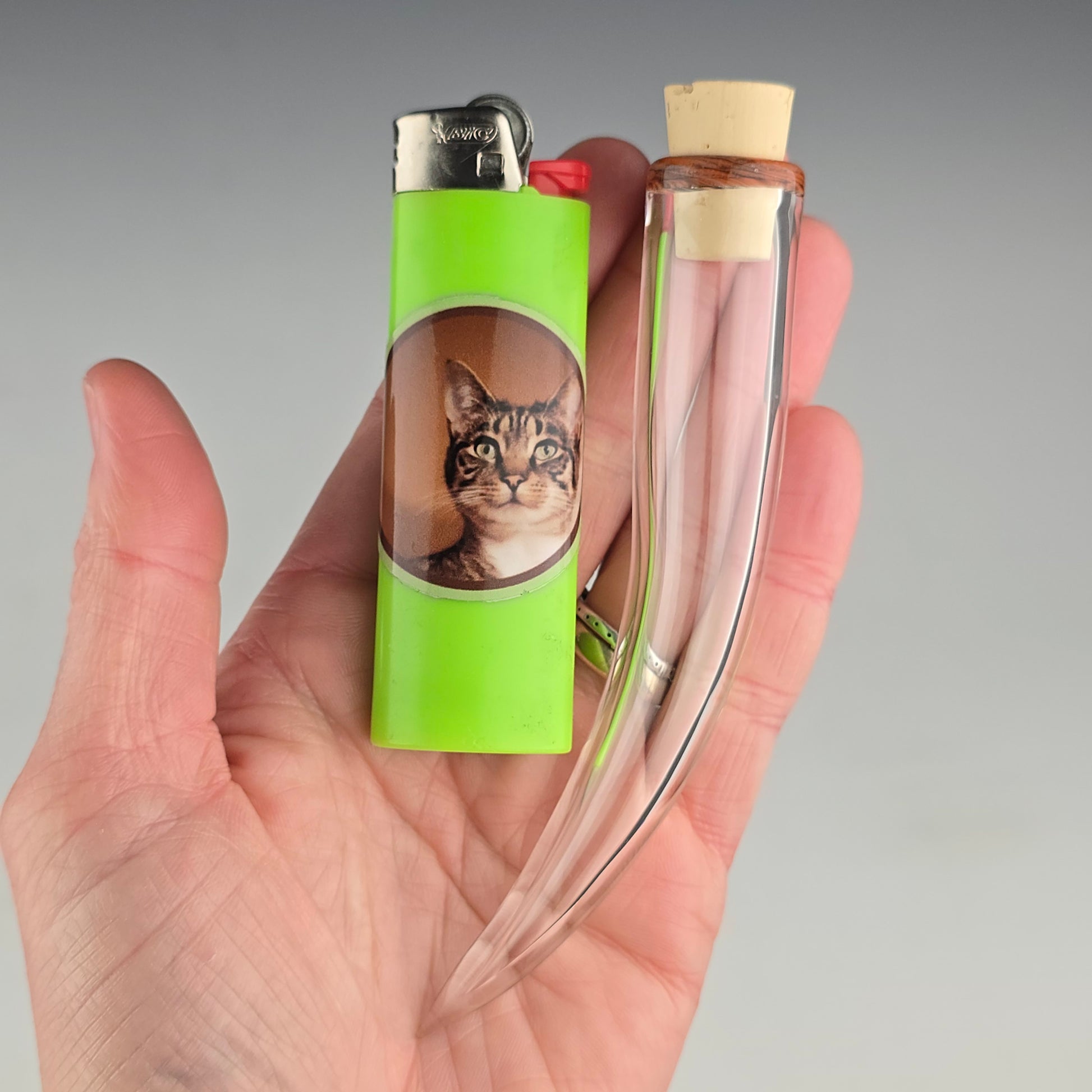 While this keeper was specifically designed in the shape of a whisker, it can hold more than just found whiskers. It can also serve as a unique place to store other cherished keepsakes, such as fur, kitten teeth, or a small amount of cremains.