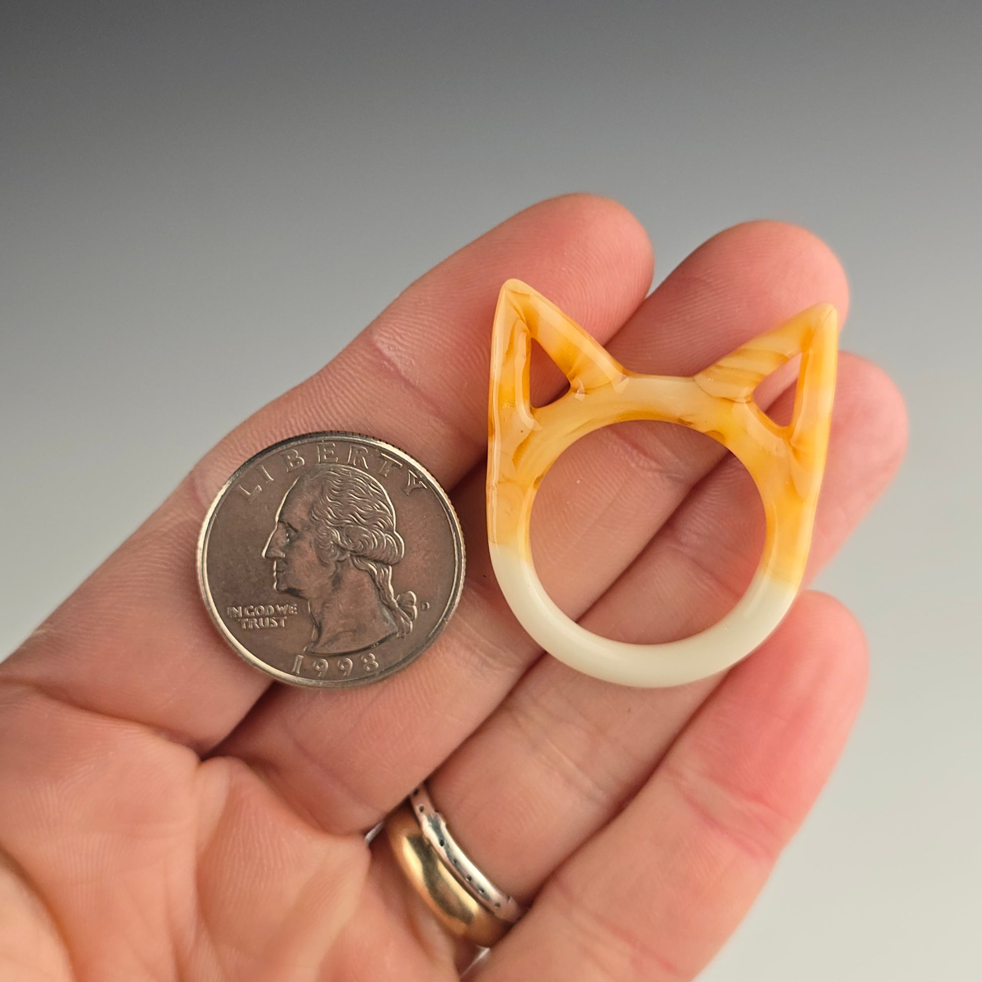 Bi colored Orange and Cream colored Kitty Face pendant. See photos for size reference.