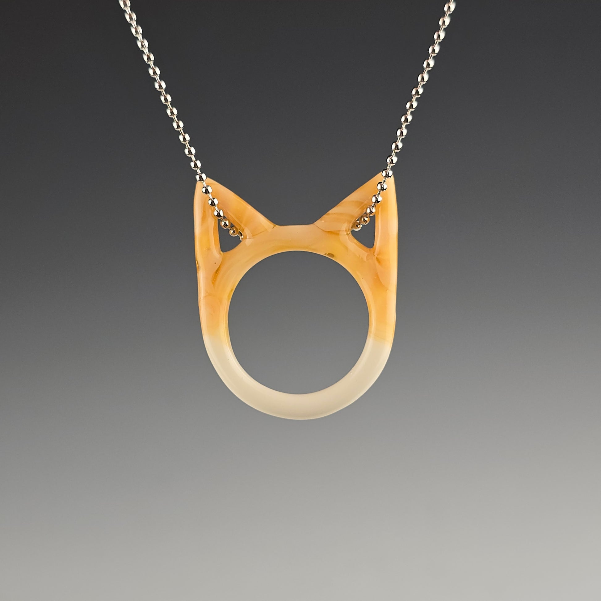 All Kitty Face pendants are individually handcrafted from COE 33 borosilicate glass—no molds are used. Each piece is shaped by hand using graphite tools and then kiln-annealed at 1050°F to ensure strength and durability.