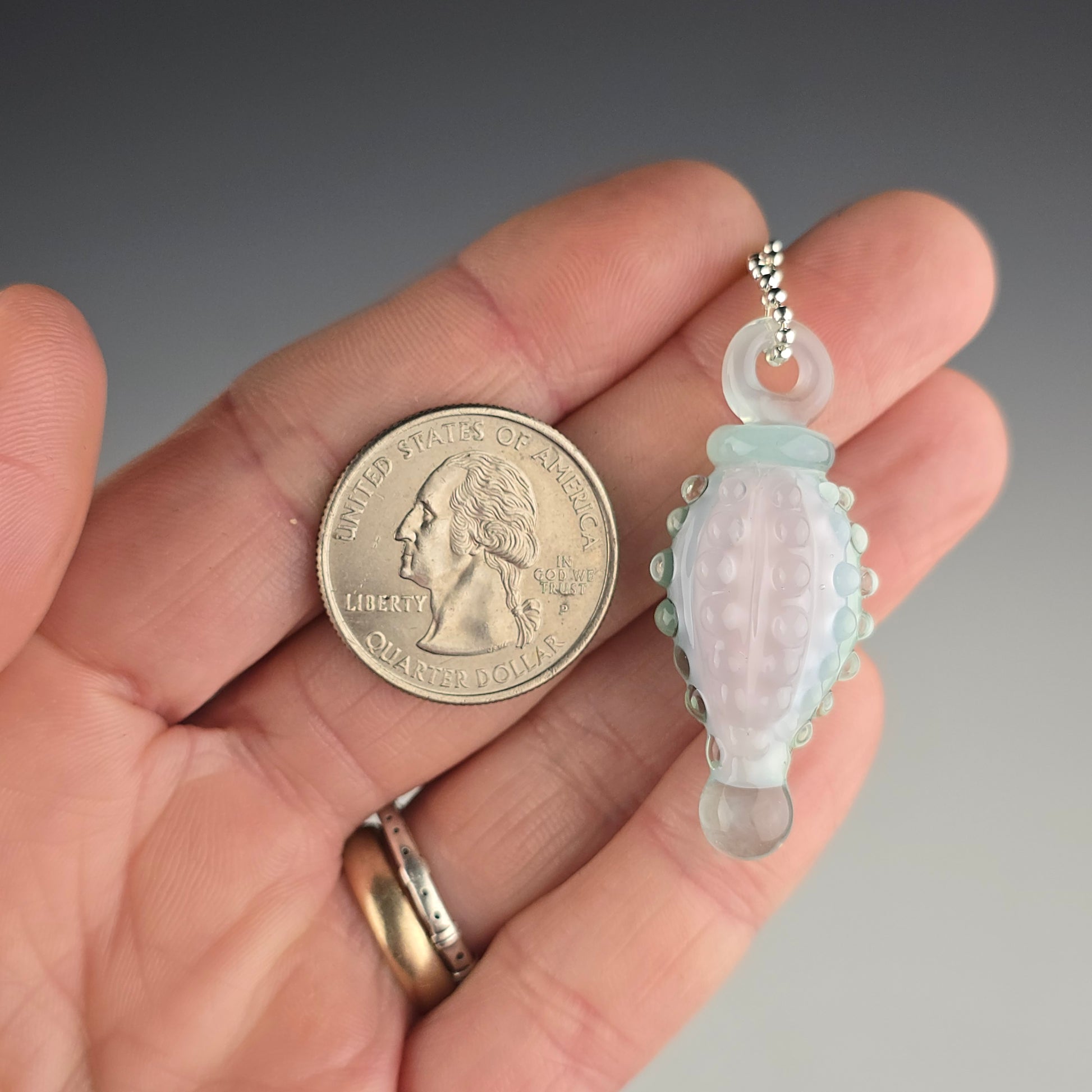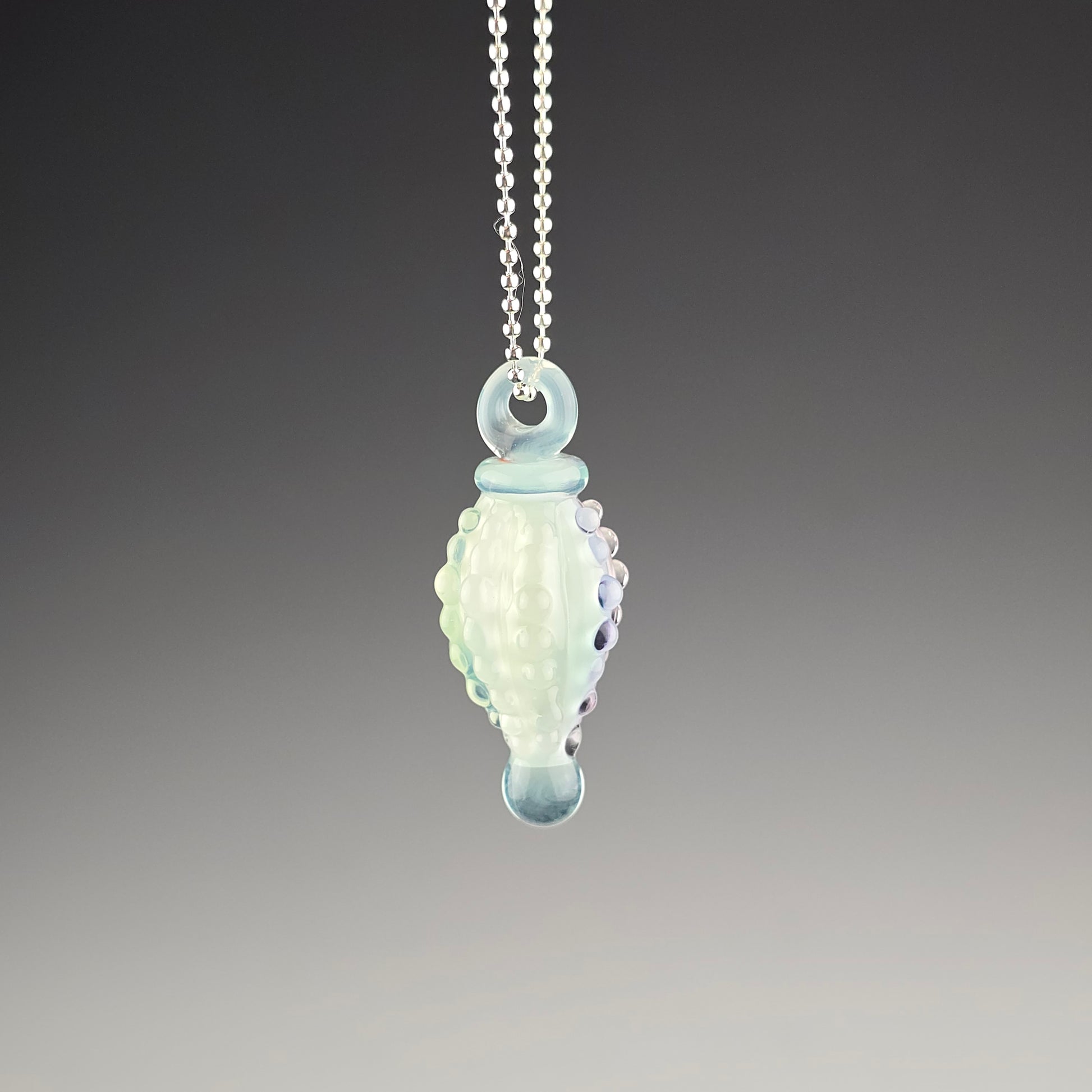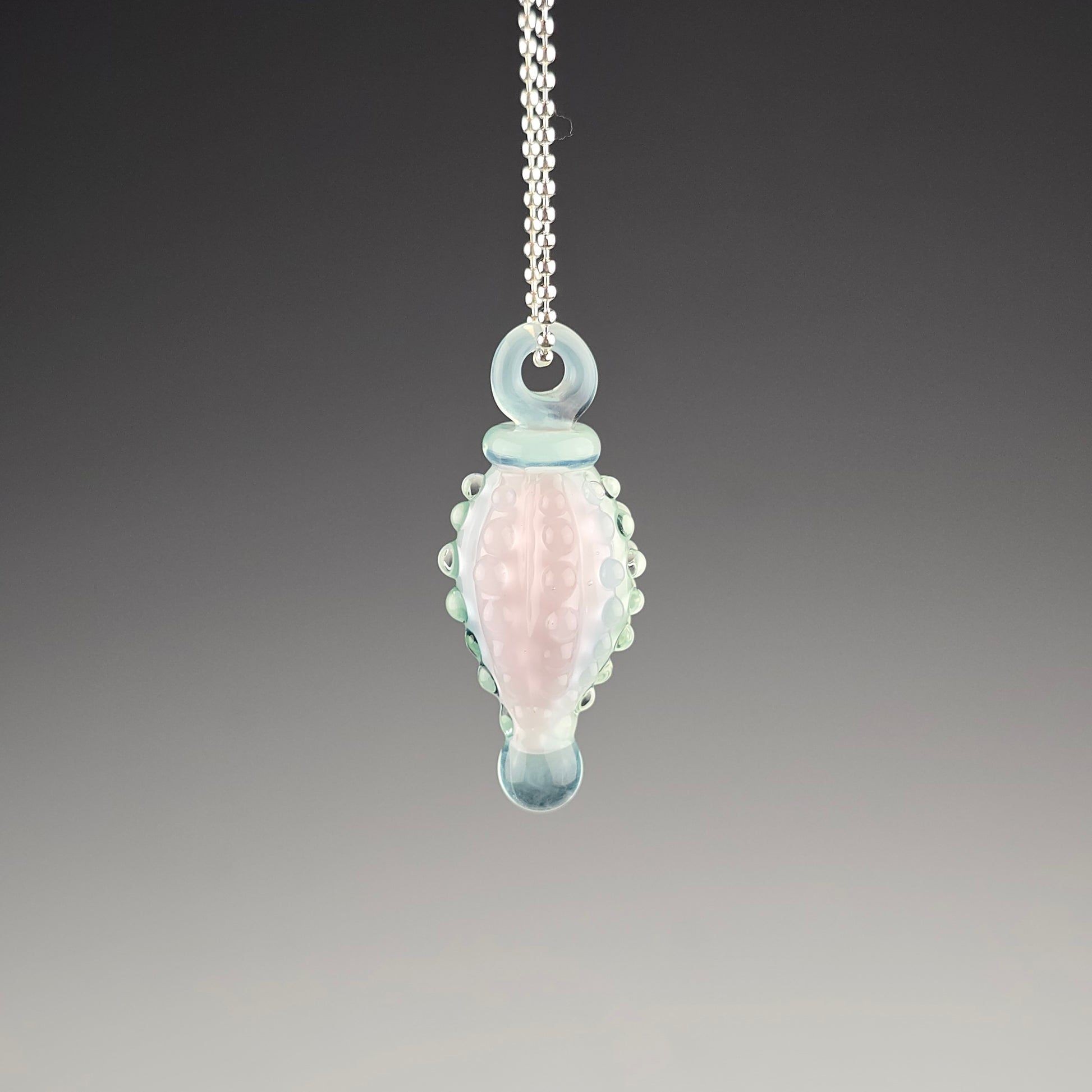 Comes boxed with a ball chain. If you’d like a different color than the one shown or prefer a colored hemp cord instead, please let me know in the special instruction box at the bottom of the cart page before you checkout.