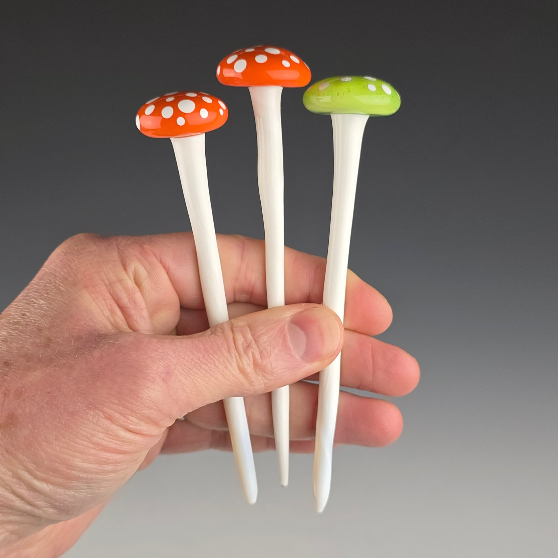 Add some fun to your house plant with an adorable little glass mushroom! Listing is for 1 mushroom, select choice from available stock.