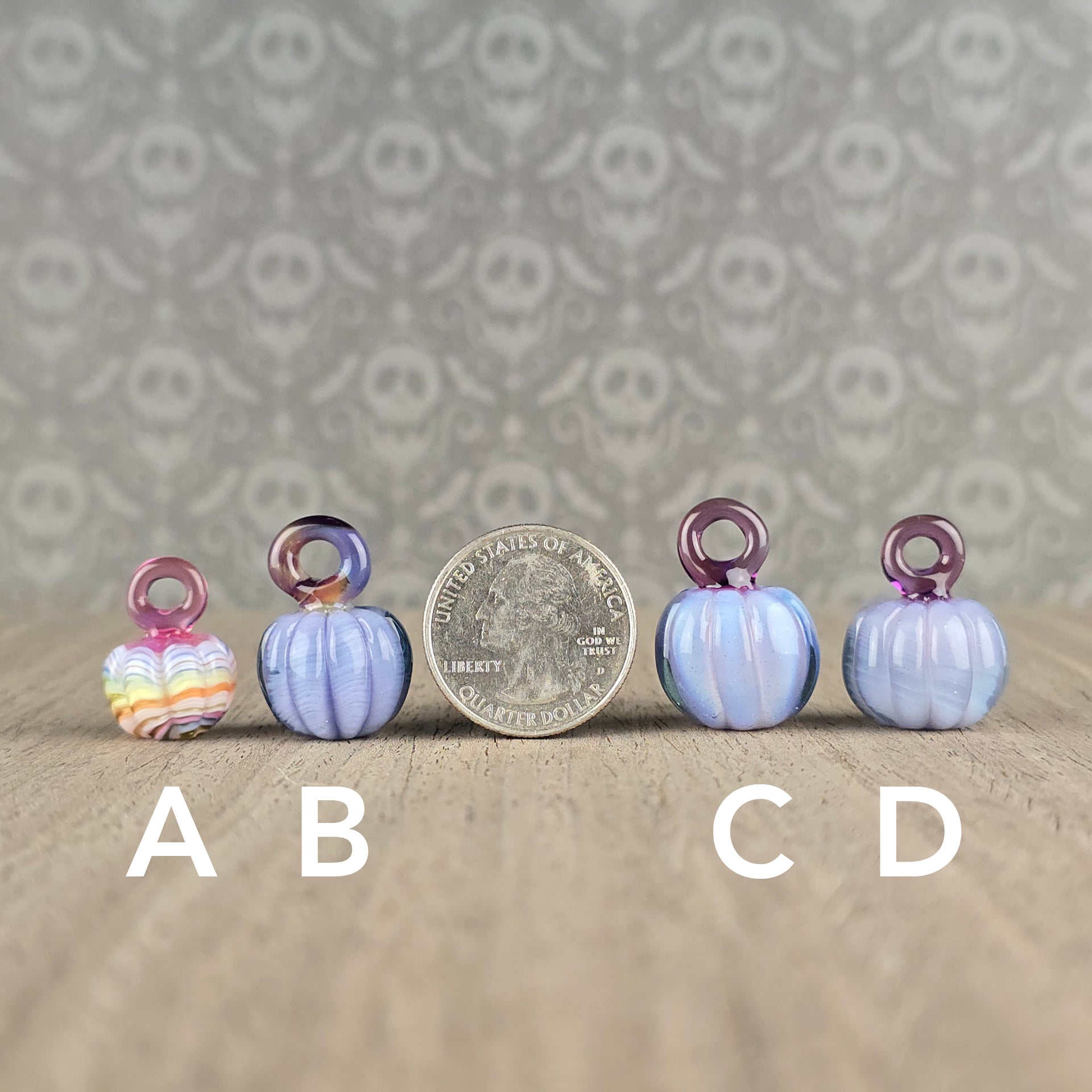 Listing is for one glass pumpkin pendant. See photos for identification reference and select specific pumpkin from available stock. See photos for size reference.