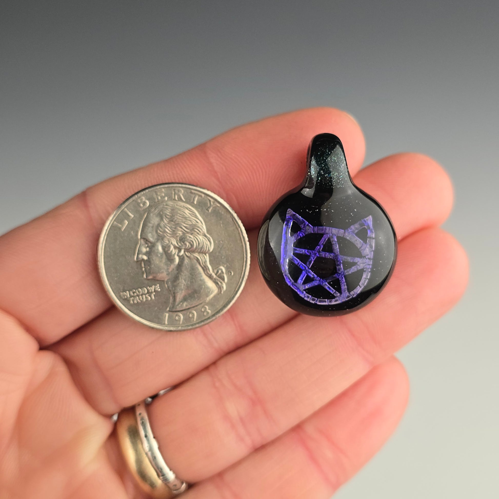Purple Kitty Face Pentacle Dichro image with Galaxy Black background and Heavy Blue Leprechaun bale. See photos for size reference.