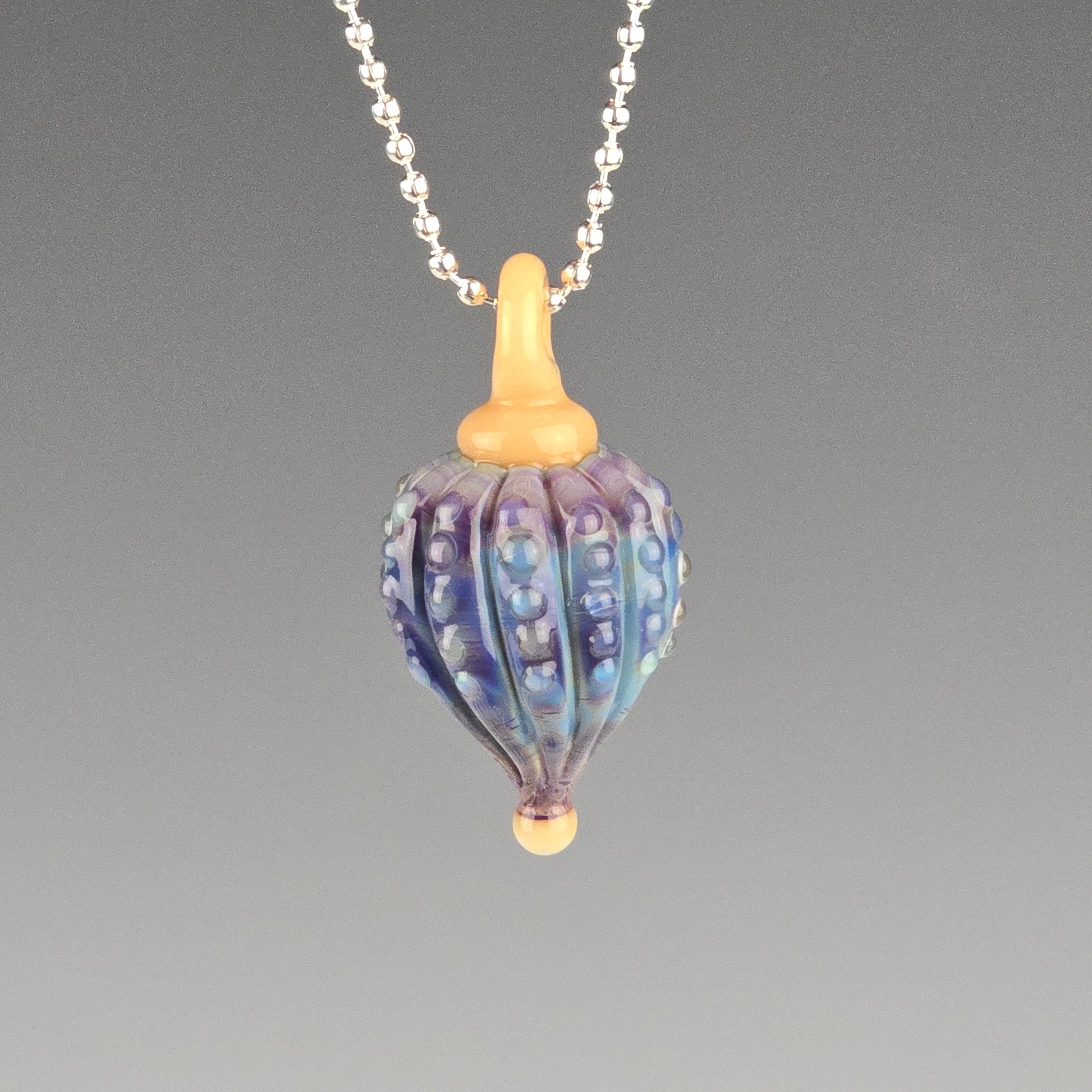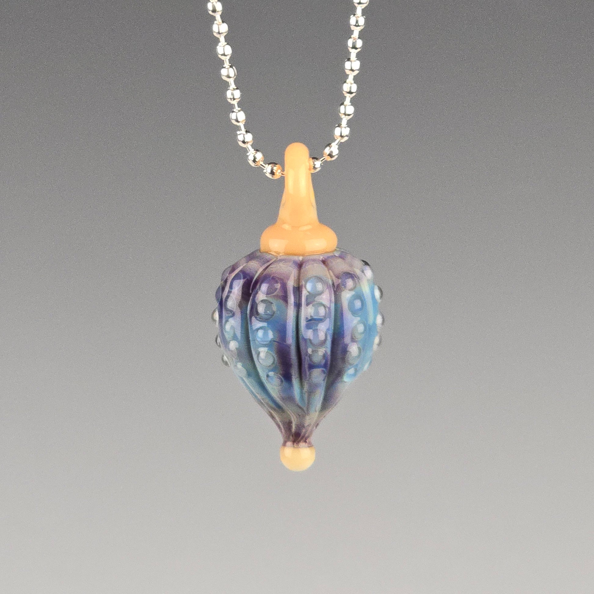 Comes boxed with a ball chain. If you’d like a different color than the one shown or prefer a colored hemp cord instead, please let me know in the special instruction box at the bottom of the cart page before you checkout.