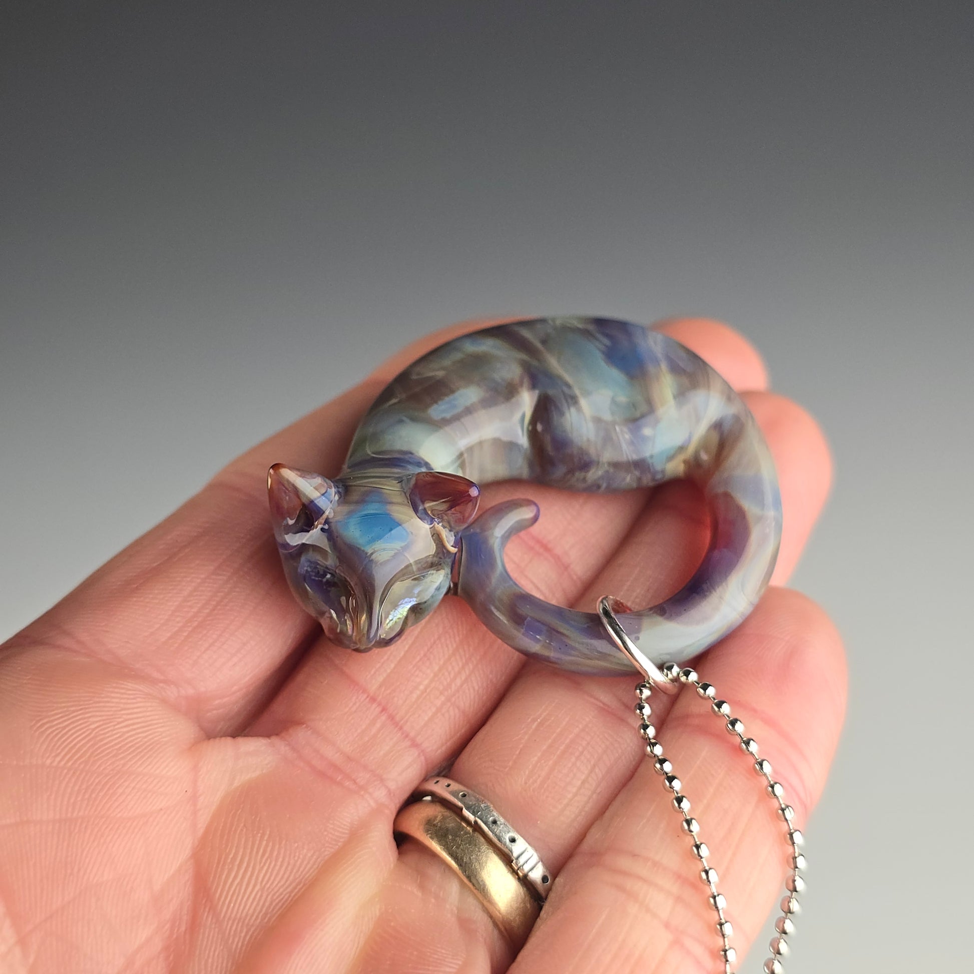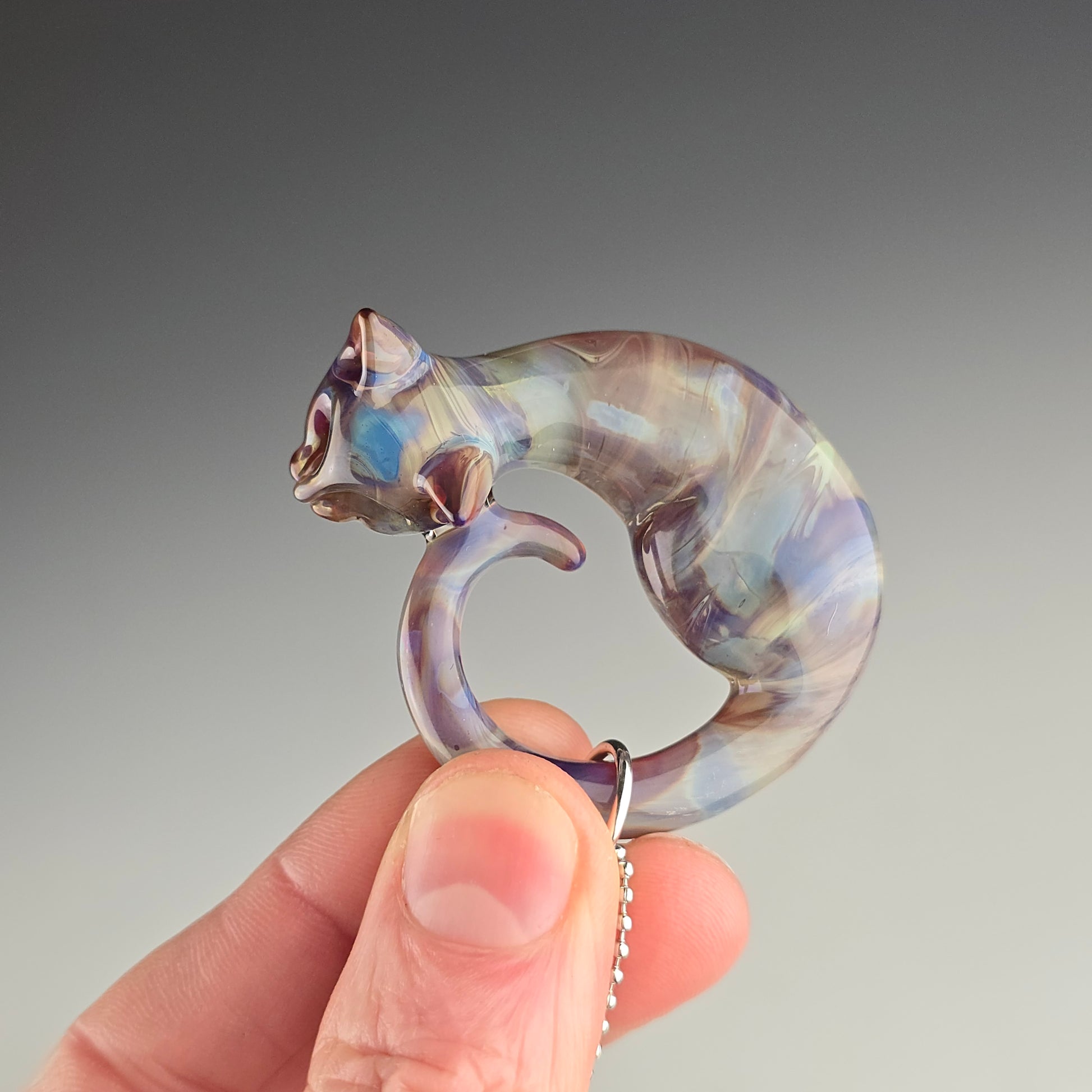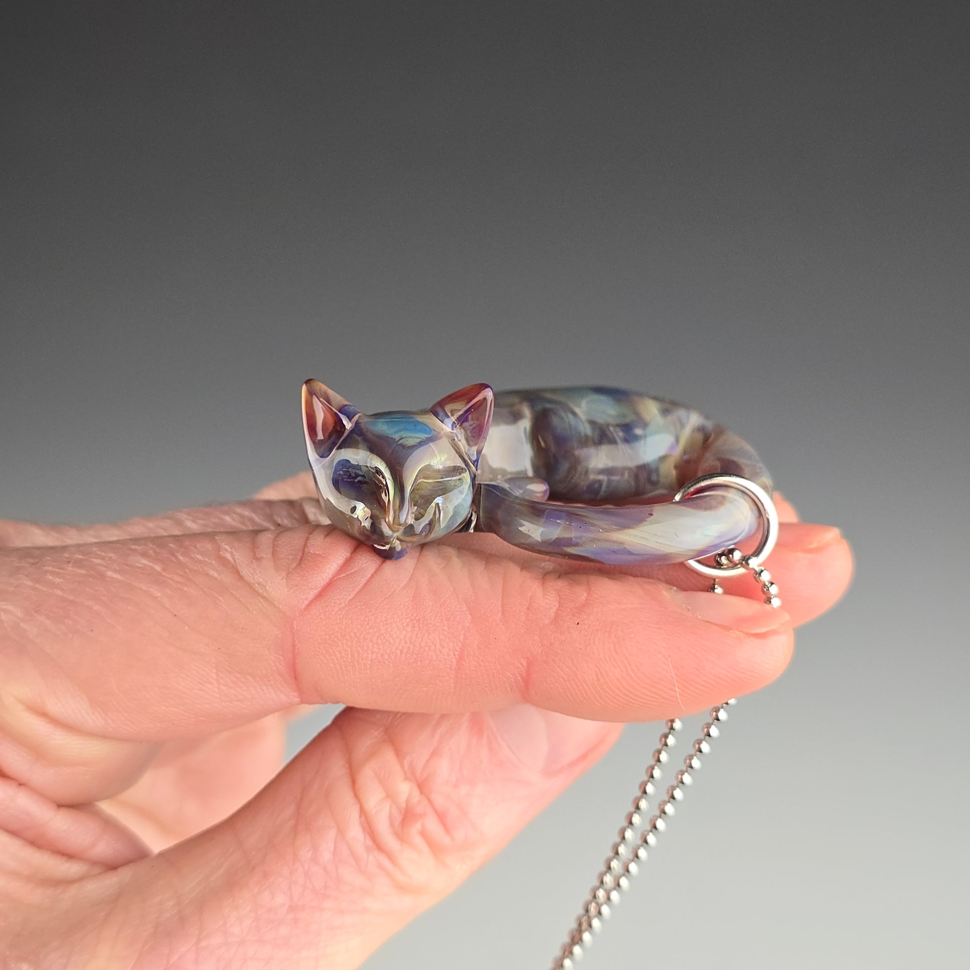 All Sleeping Kitties are individually handcrafted from COE 33 borosilicate glass and kiln annealed to 1050°F to ensure strength and durability. Each one is carefully shaped and carved using graphite & metal tools while glass is hot, making every piece one of a kind. The kitty shown in the listing is the exact one you will receive.
