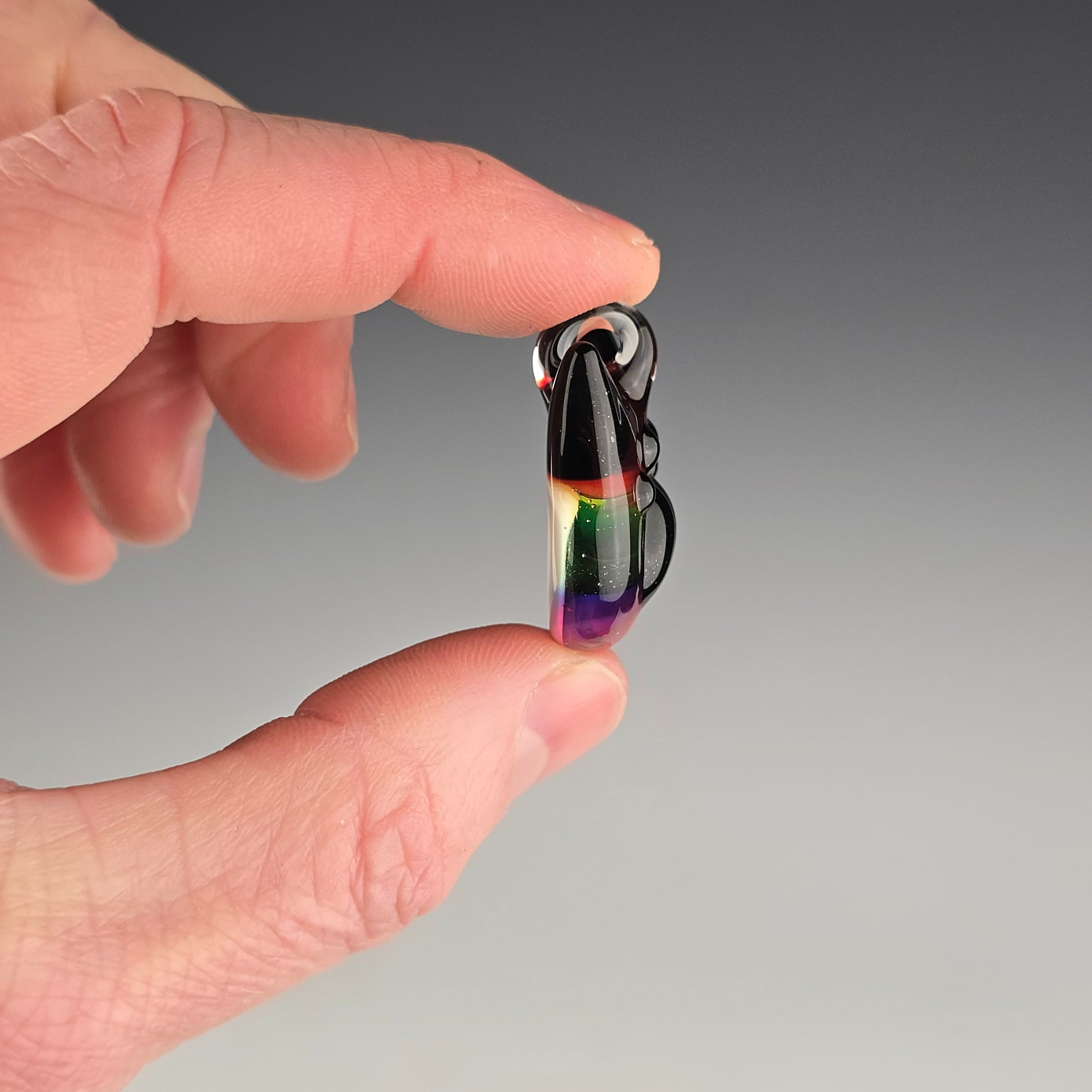 All pendants are individually handcrafted from COE 33 borosilicate glass—no molds are used. Each piece is shaped by hand using graphite tools and then kiln-annealed at 1050°F to ensure strength and durability.