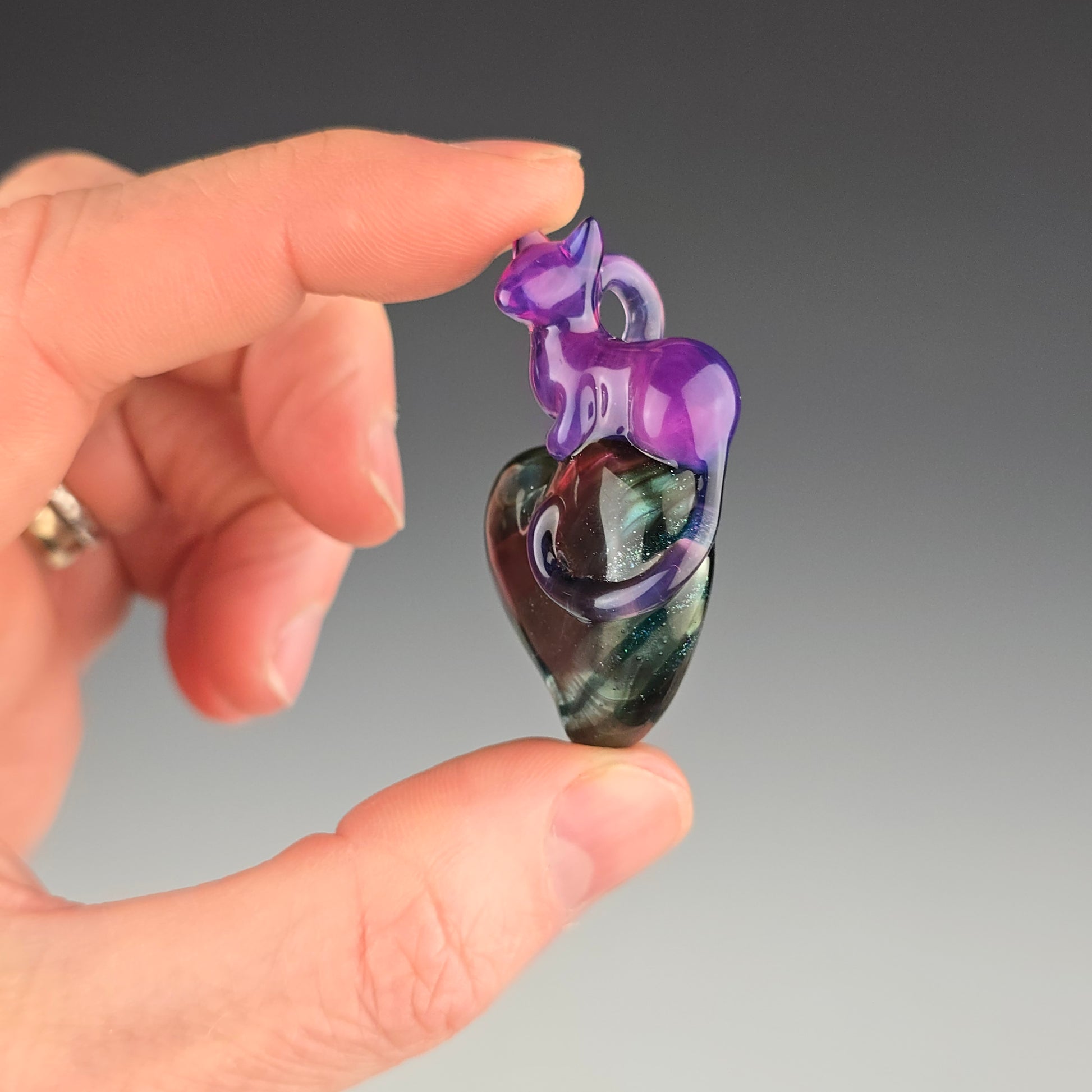 Royal Jelly kitty loaf on a multicolored metallic striped heart. See photos for size reference.