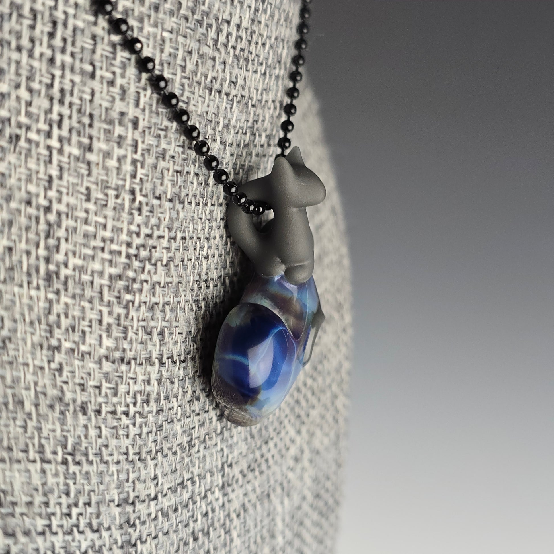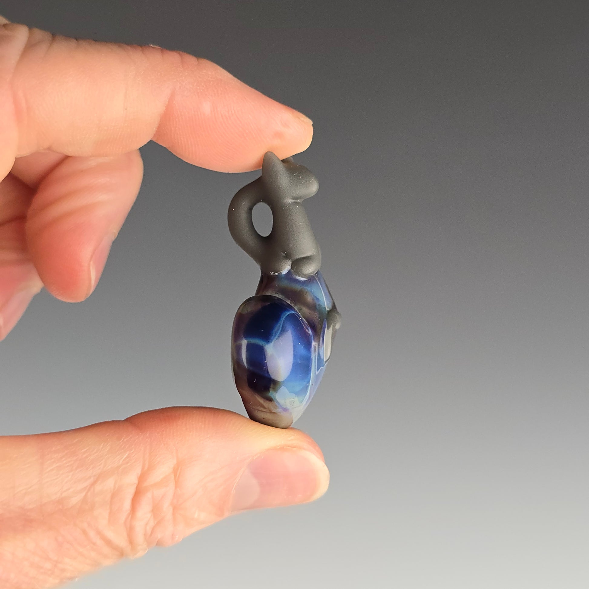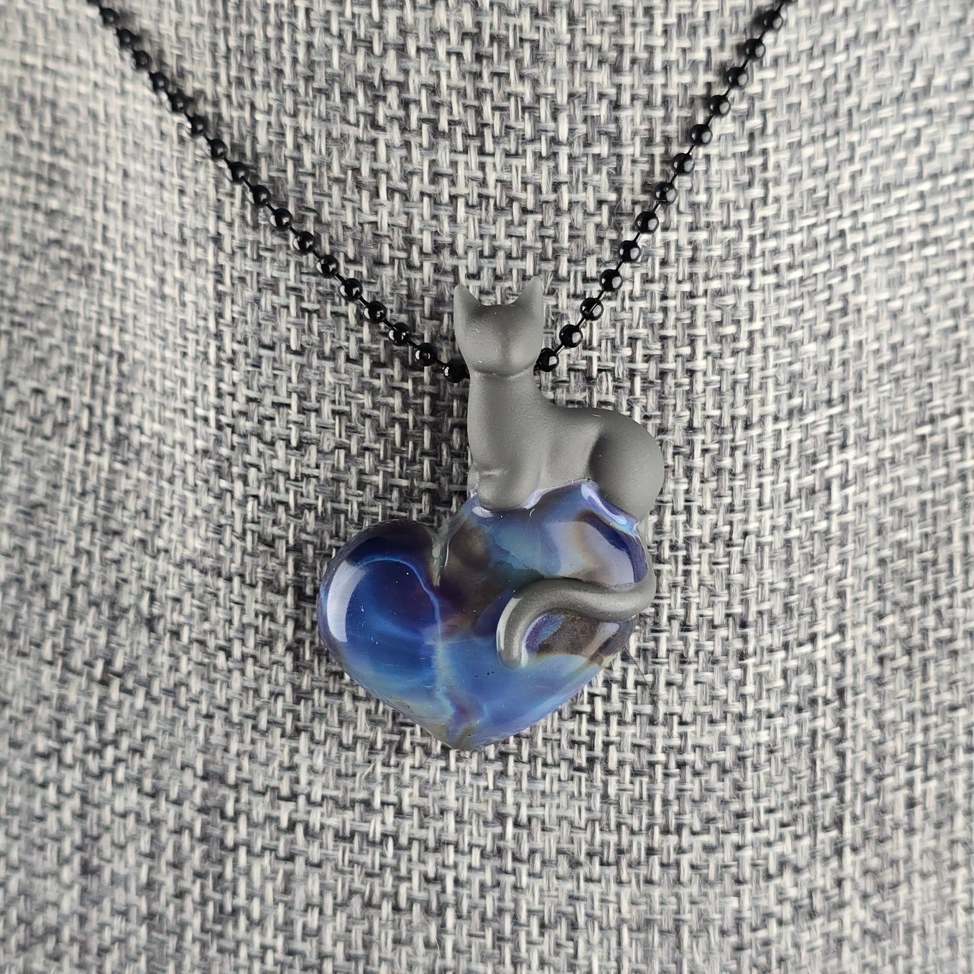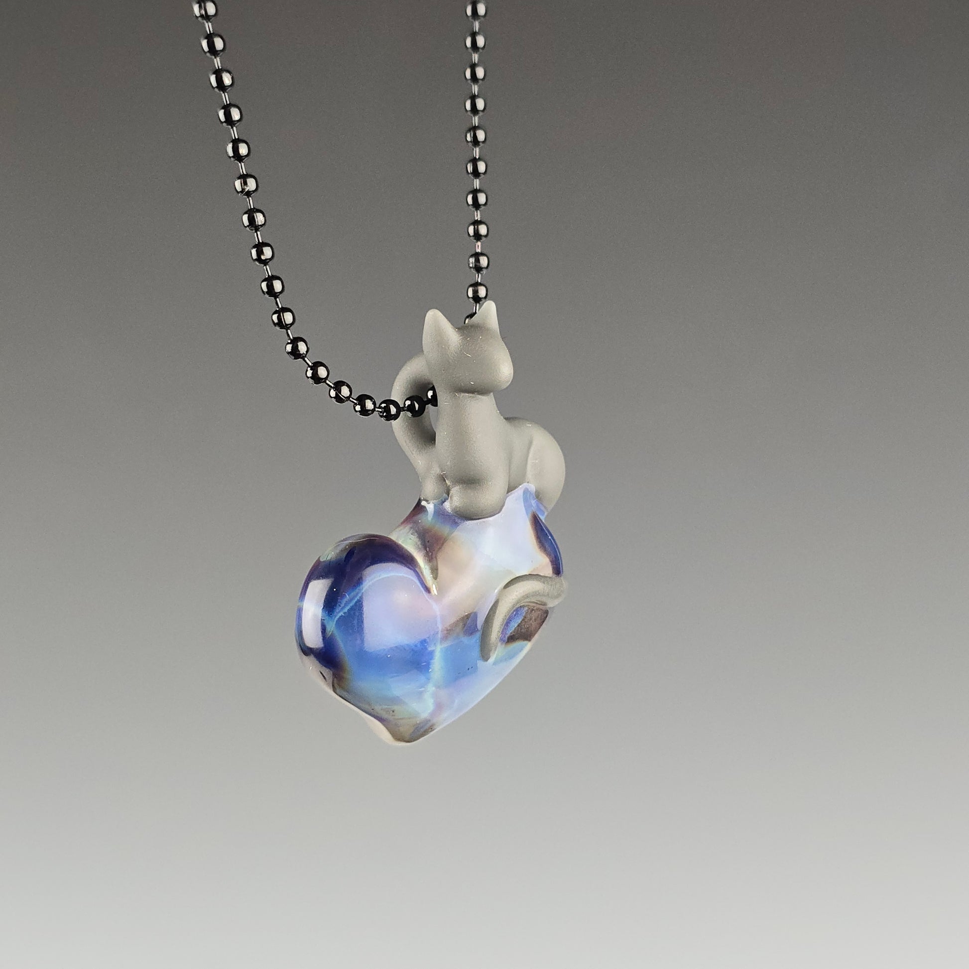 Portland Gray Kitty Loaf on a Purple Sable heart. The Kitty has been sandblasted which gives it a matte appearance. It is then rubbed with mineral oil, to reduce the appearance of fingerprints. See photos for size reference.