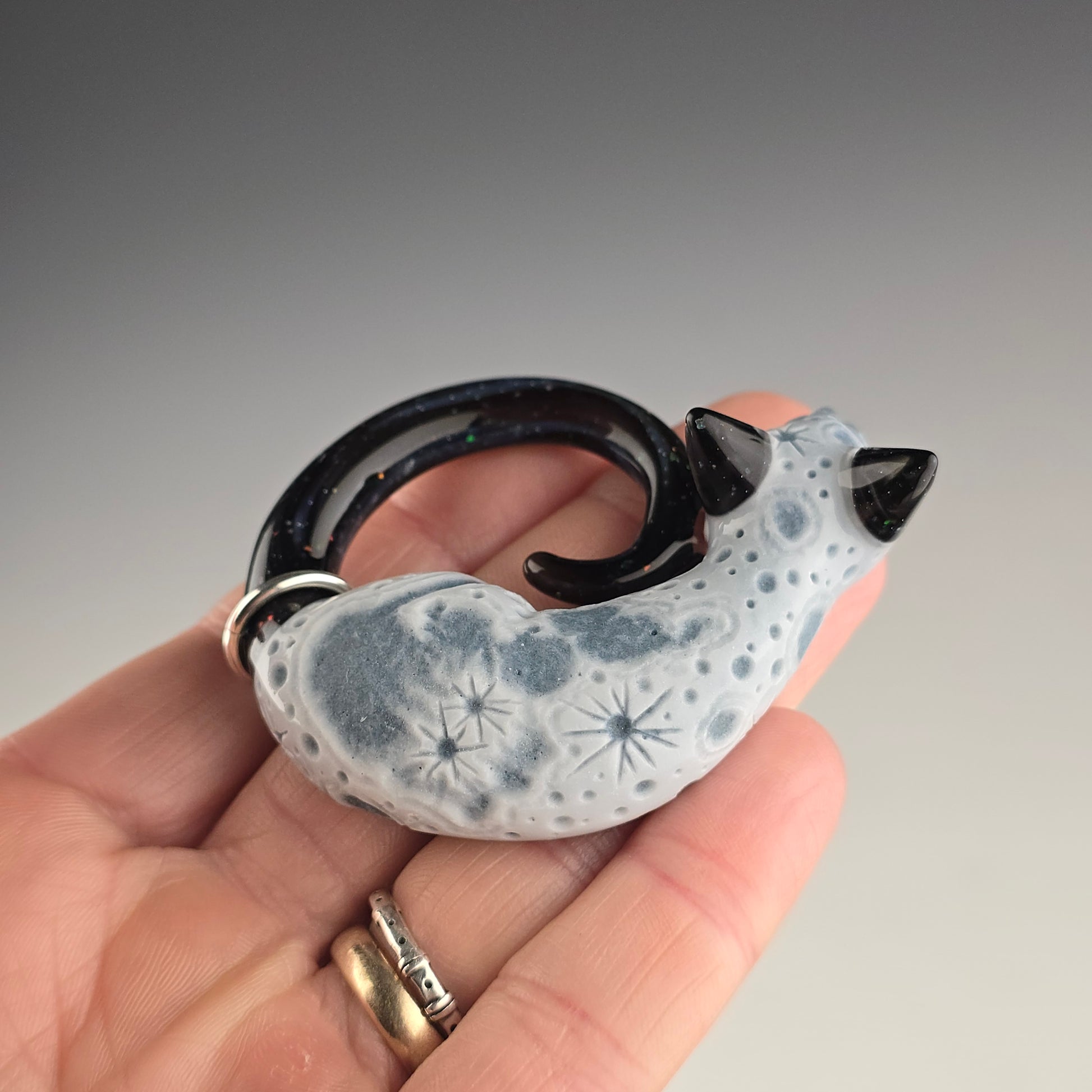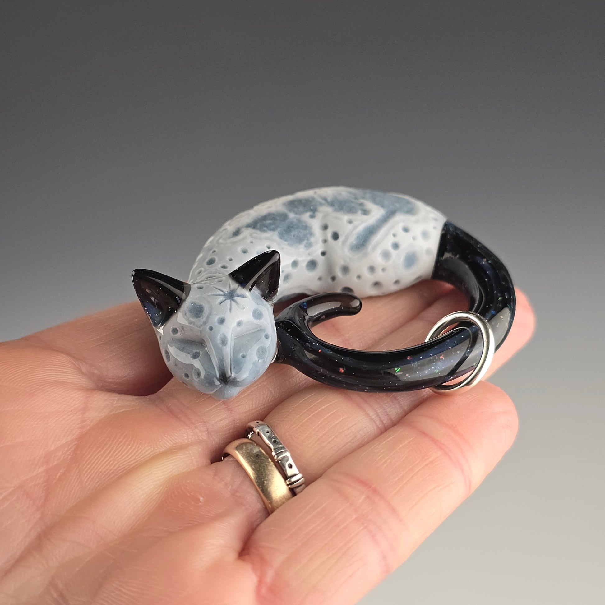 Chain photographed is not included. Your Sleeping Kitty will come in a faux fur lined "Kitty Bed" box with stickers. The Argentium jump rind can be removed upon request. See photos for size reference. Pendant comes signed and dated with a titanium pen.