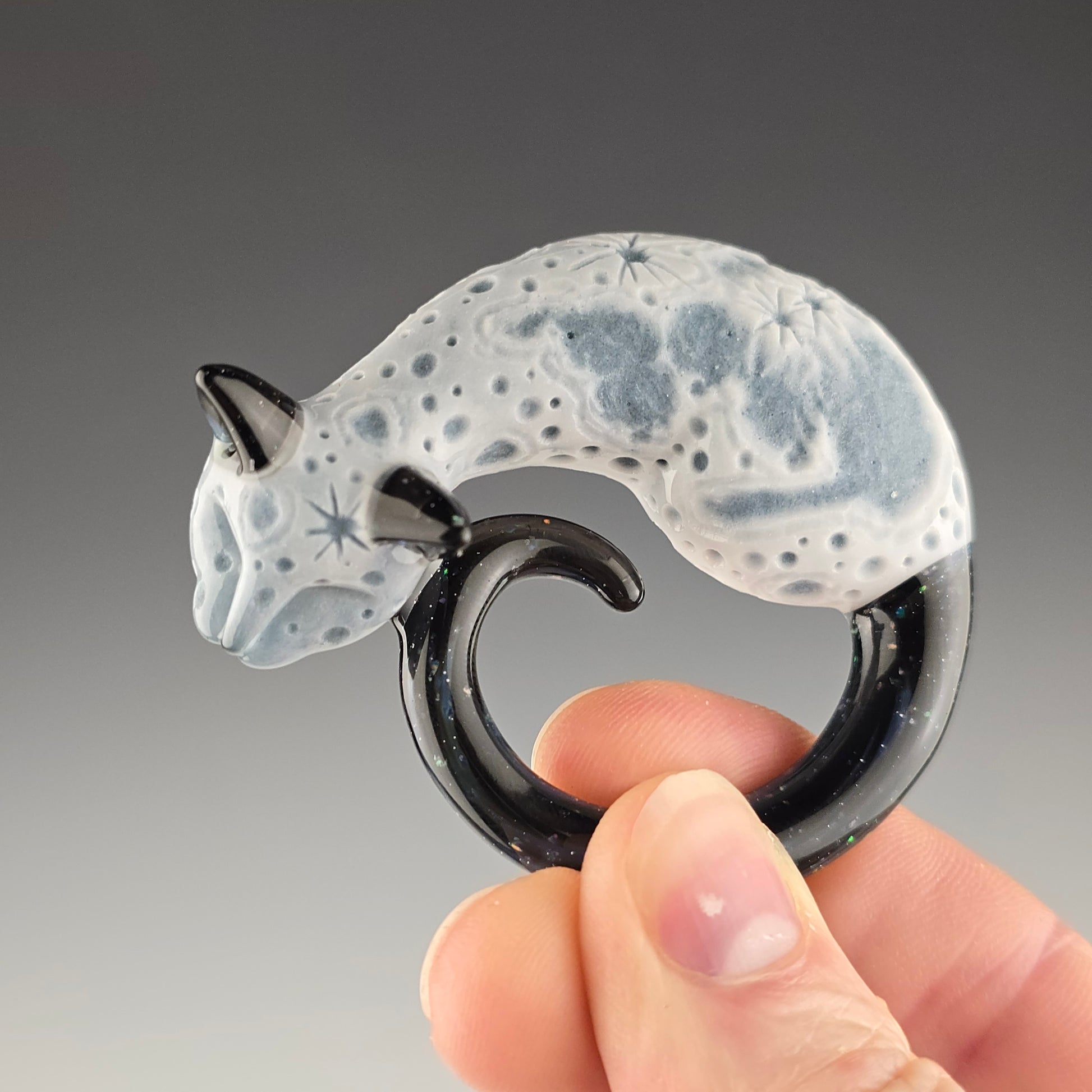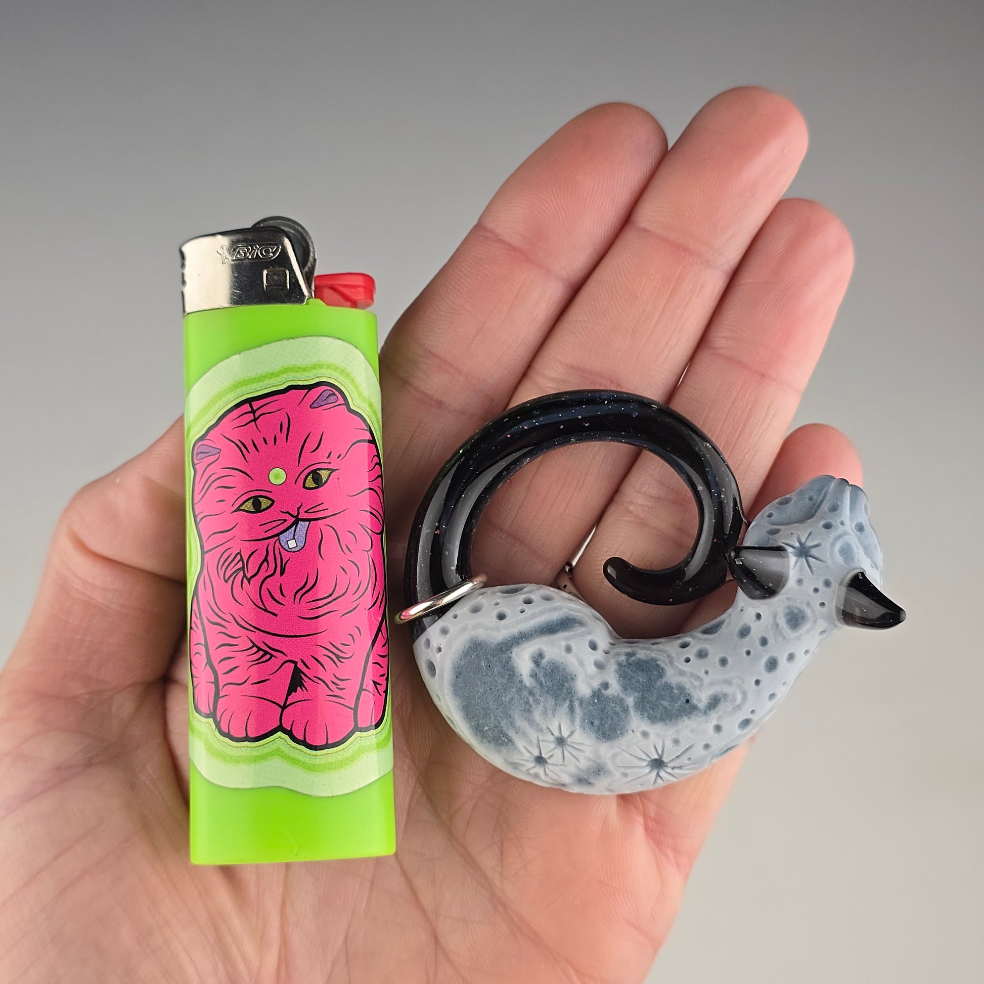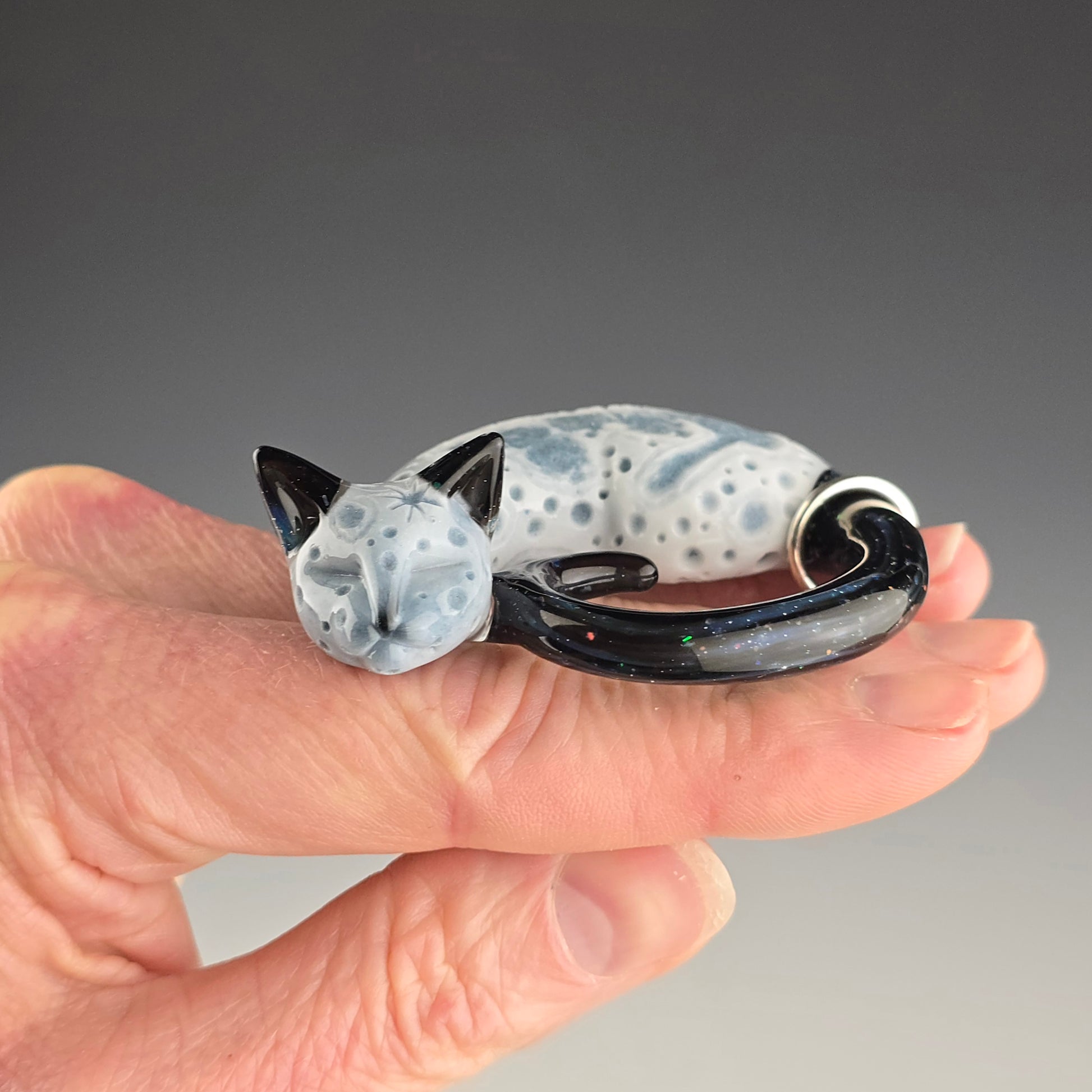 All Sleeping Kitties are individually handcrafted from COE 33 borosilicate glass and kiln annealed to 1050°F to ensure strength and durability. Each one is carefully shaped and carved using graphite & metal tools while glass is hot, making every piece one of a kind. The kitty shown in the listing is the exact one you will receive.