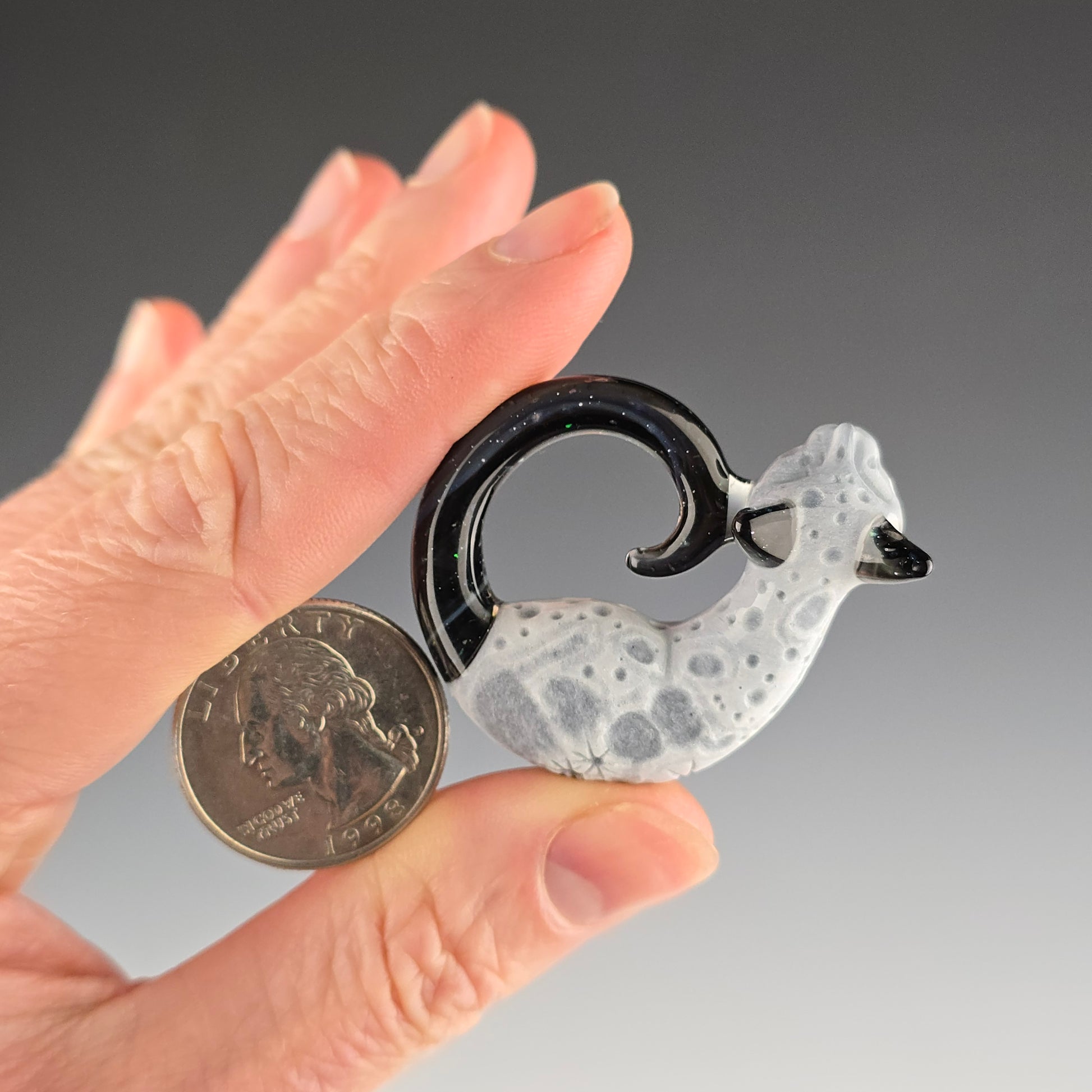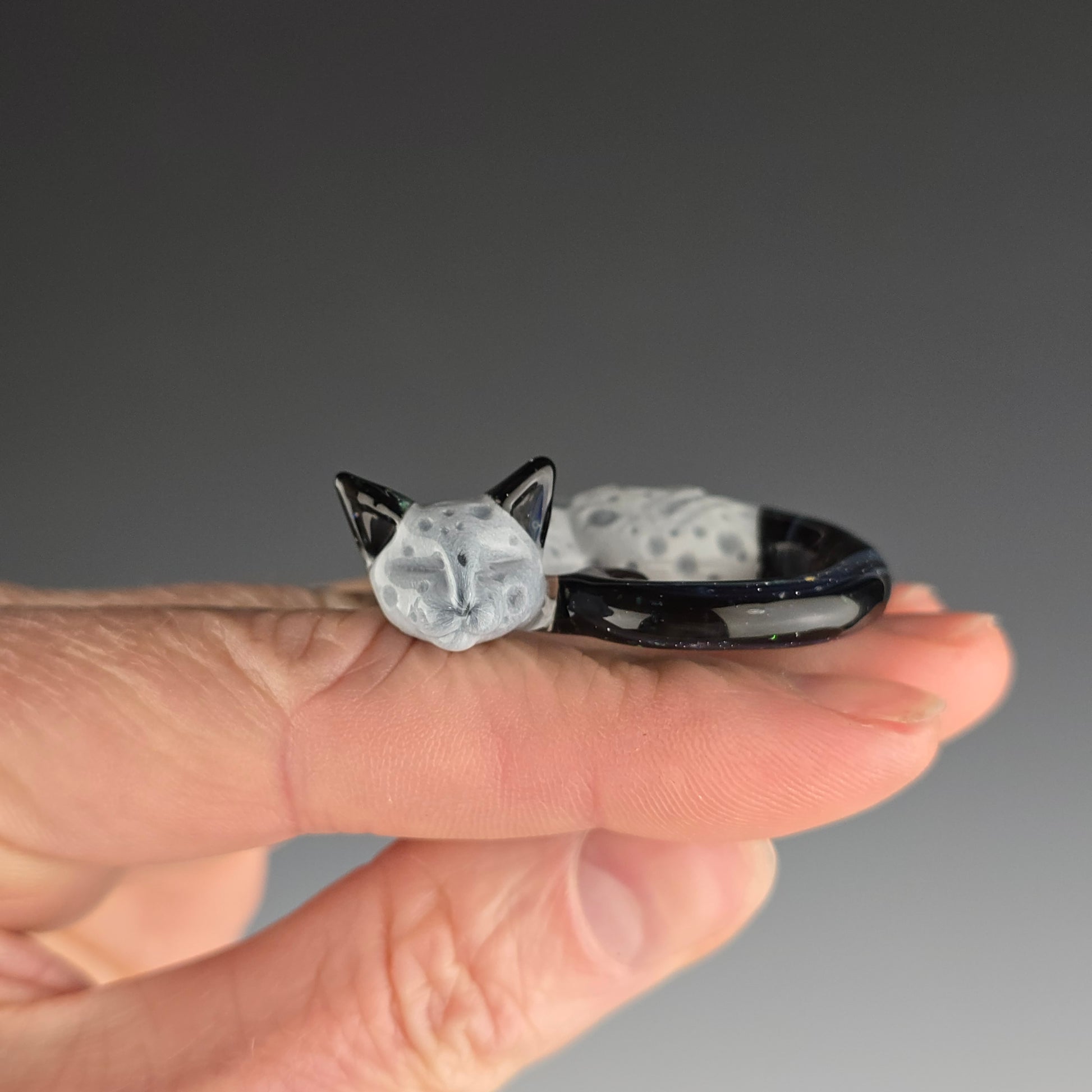 All Sleeping Kitties are individually handcrafted from COE 33 borosilicate glass and kiln annealed to 1050°F to ensure strength and durability. Each one is carefully shaped and carved using graphite & metal tools while glass is hot, making every piece one of a kind. The kitty shown in the listing is the exact one you will receive.