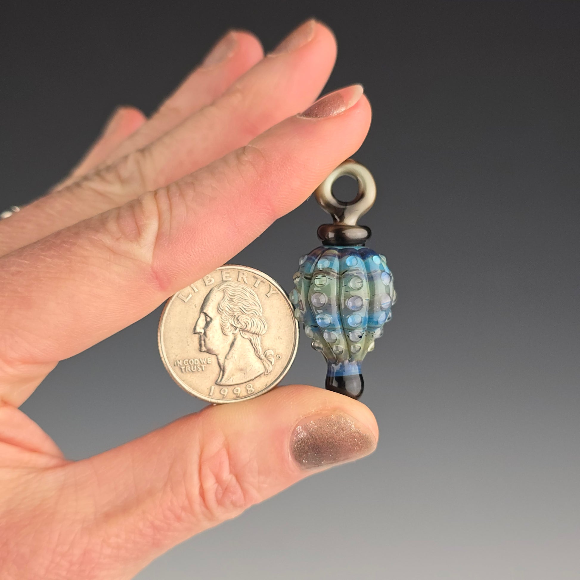 Comes boxed with a ball chain. If you’d like a different color than the one shown or prefer a colored hemp cord instead, please let me know in the special instruction box at the bottom of the cart page before you checkout.