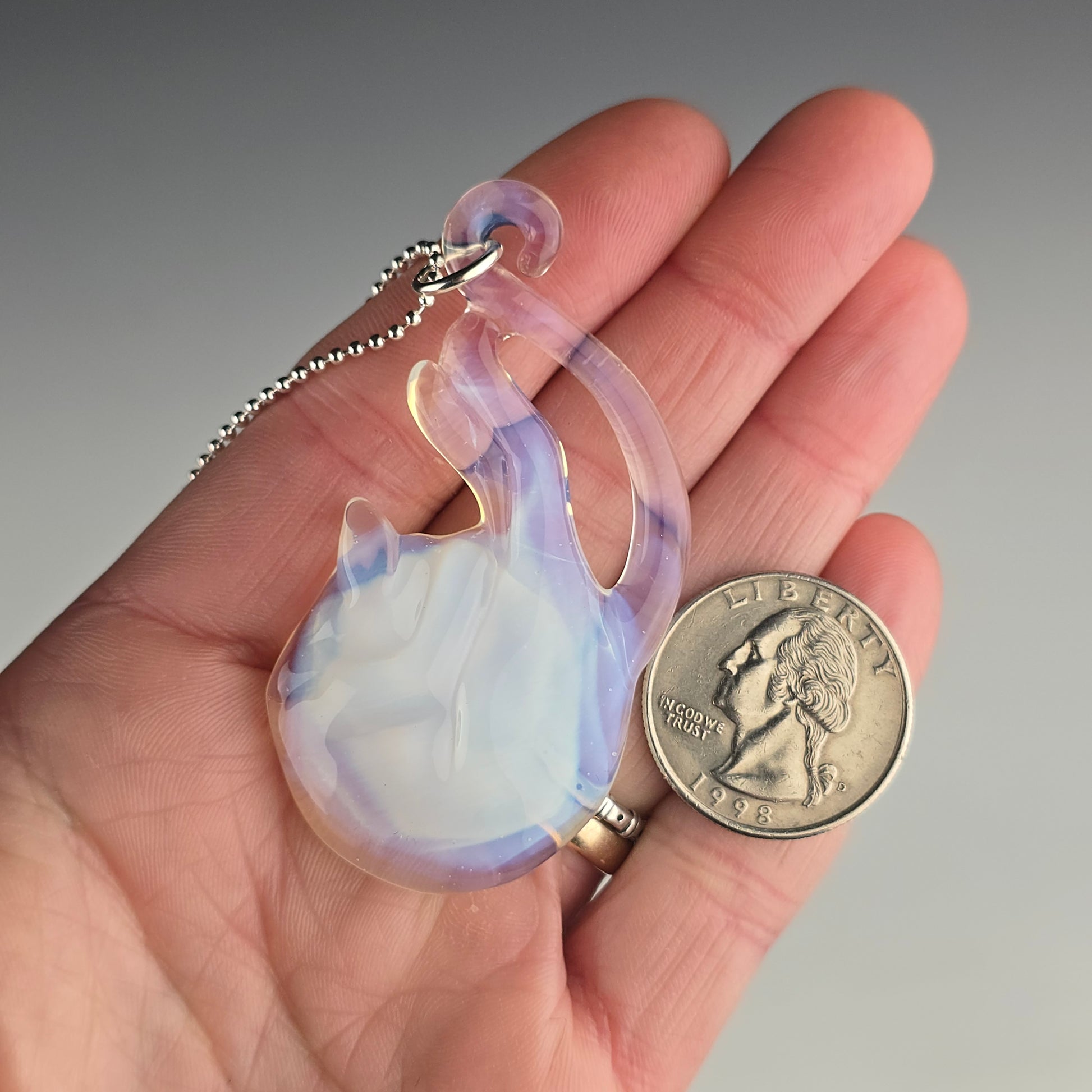 Comes boxed with a ball chain & sticker. If you’d like a different color than the one shown or prefer a colored hemp cord instead, please let me know in the special instruction box at the bottom of the cart page before you checkout.