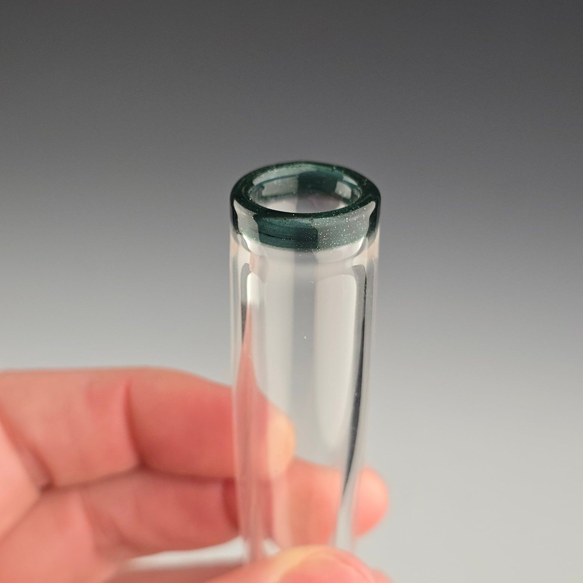 Sapphire accent on clear tubing. This is a deep dark green color with lots of sparkle. See photos for size reference.