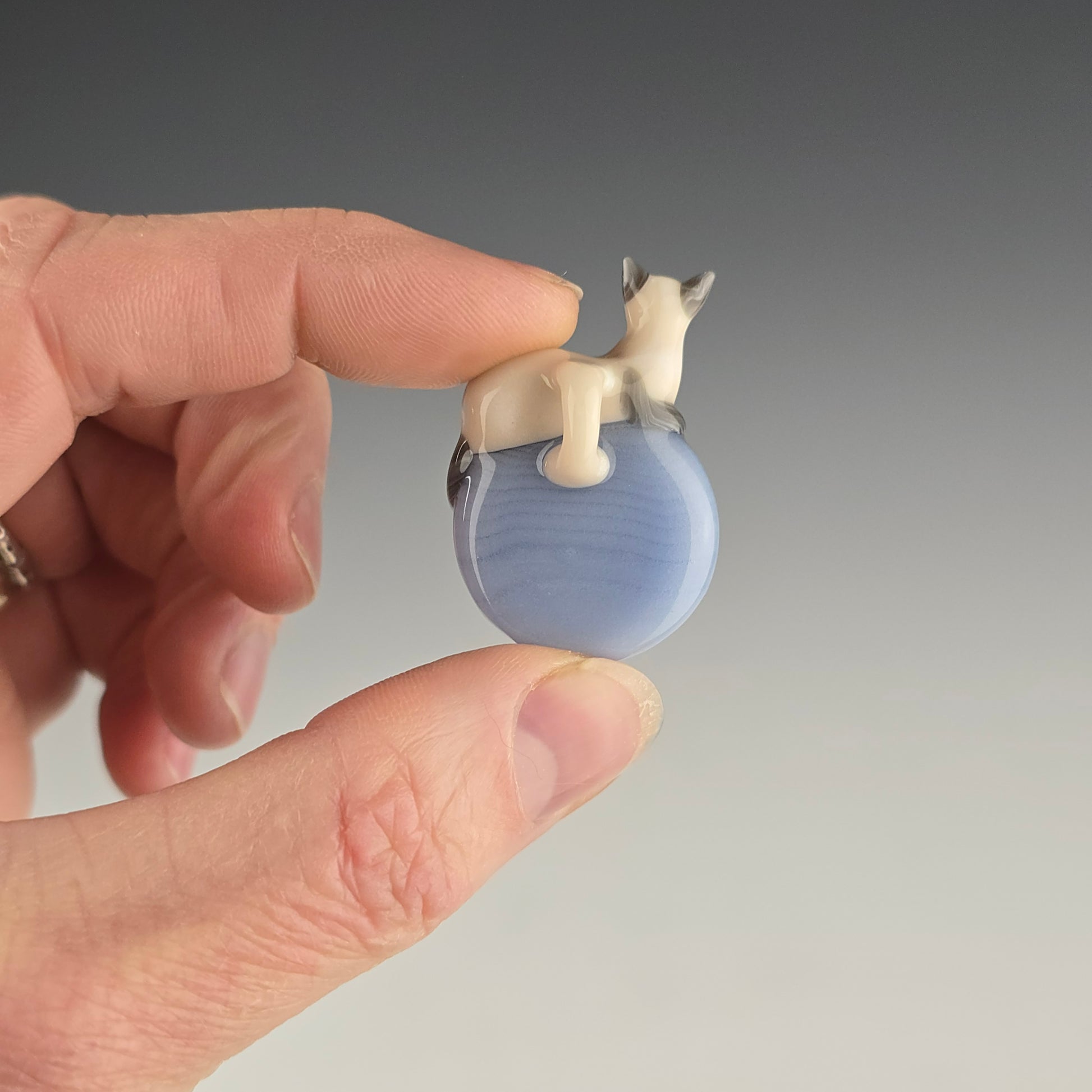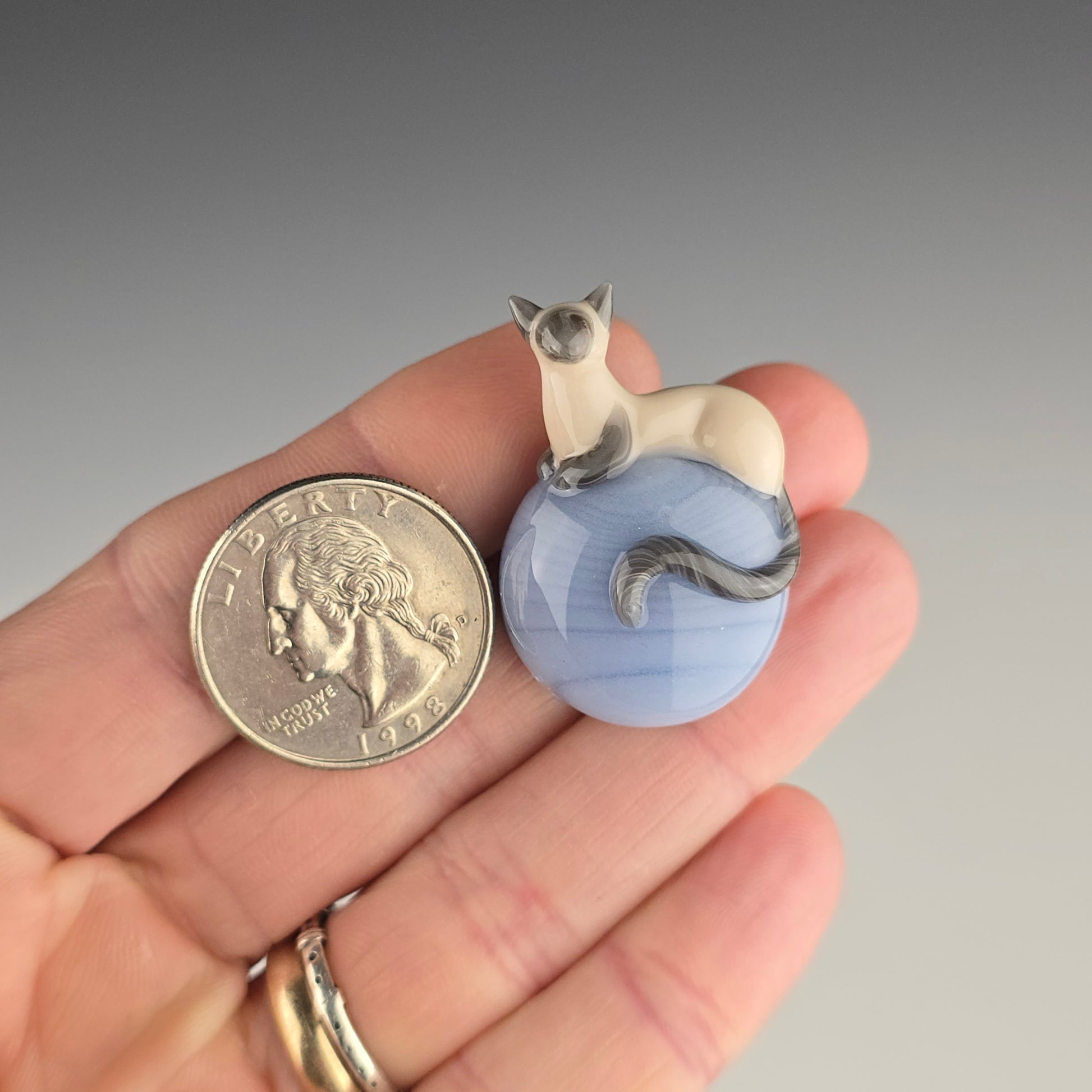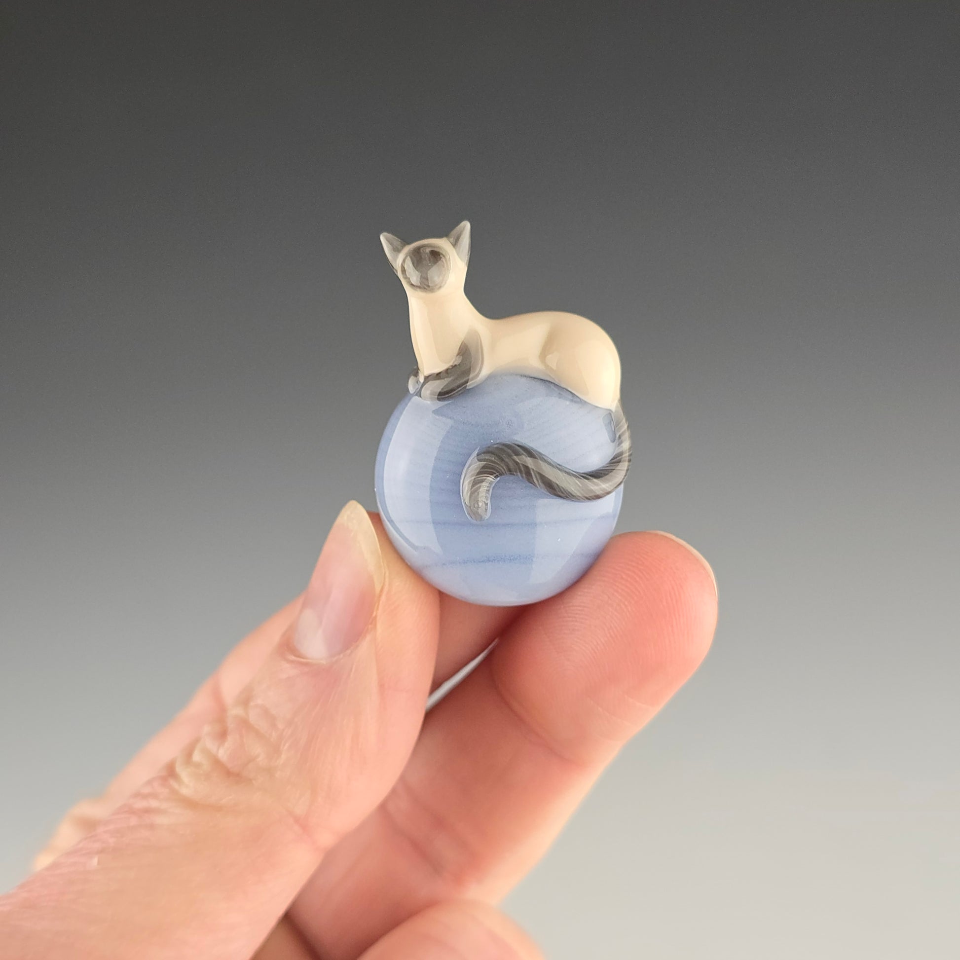 Tabby Point sitting atop a Baby Blue ball made with New Blue by Parramore Glass. See photos for size reference.