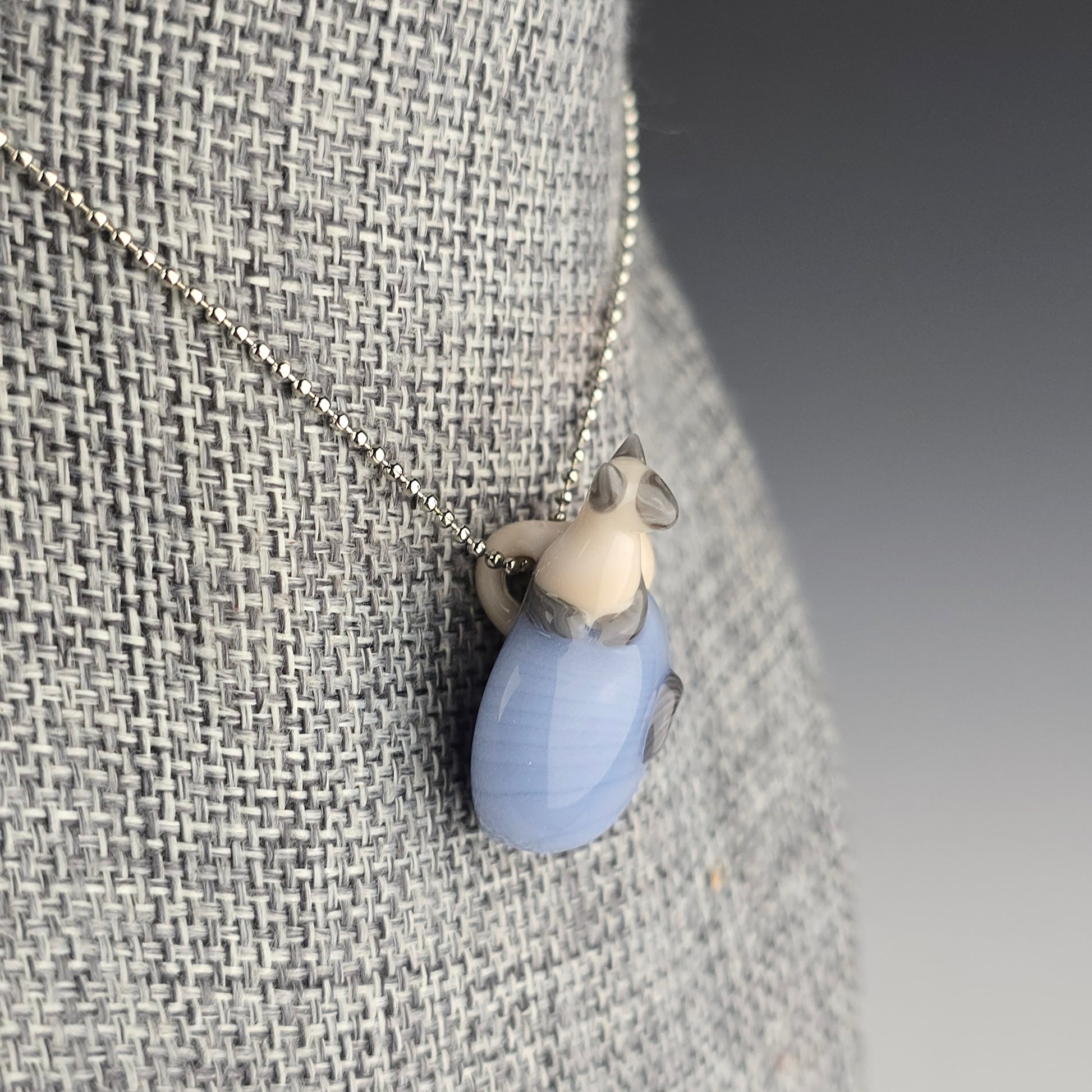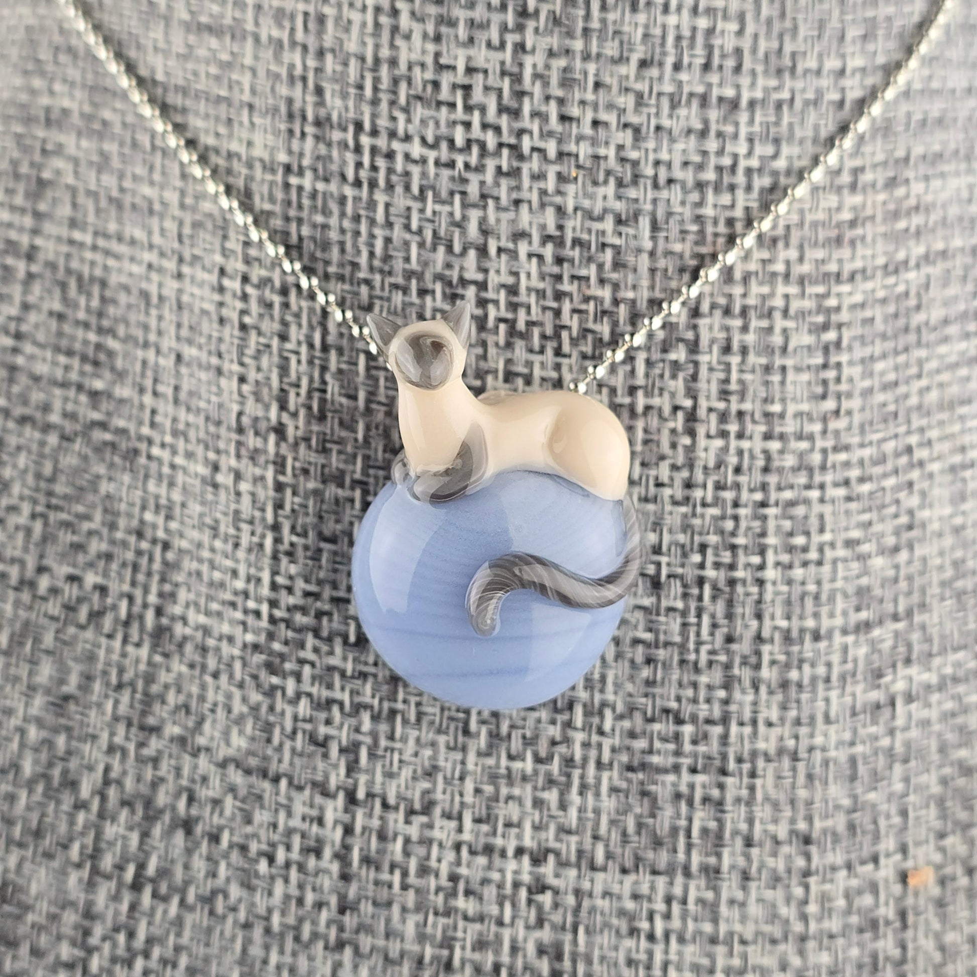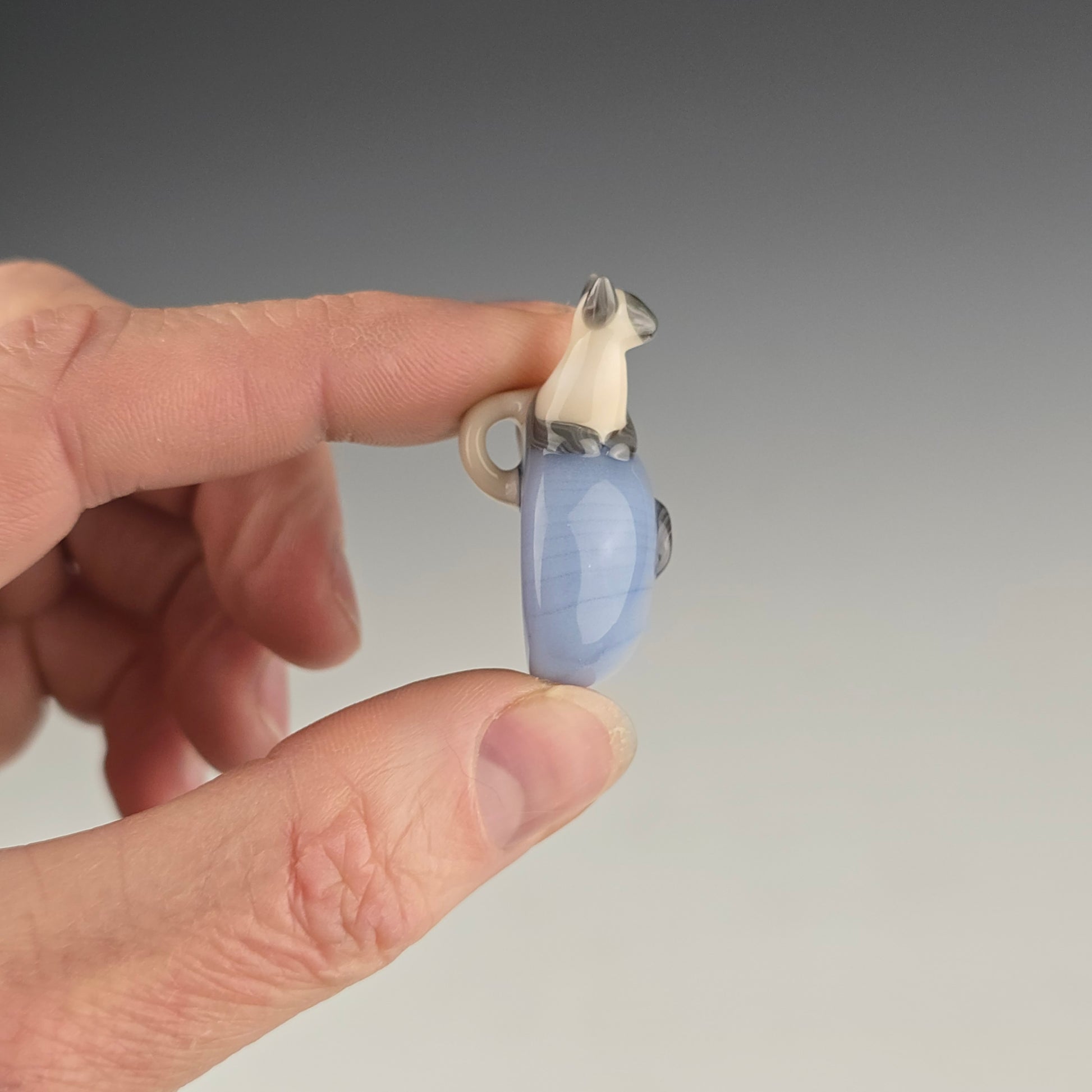 Tabby Point sitting atop a Baby Blue ball made with New Blue by Parramore Glass. See photos for size reference.