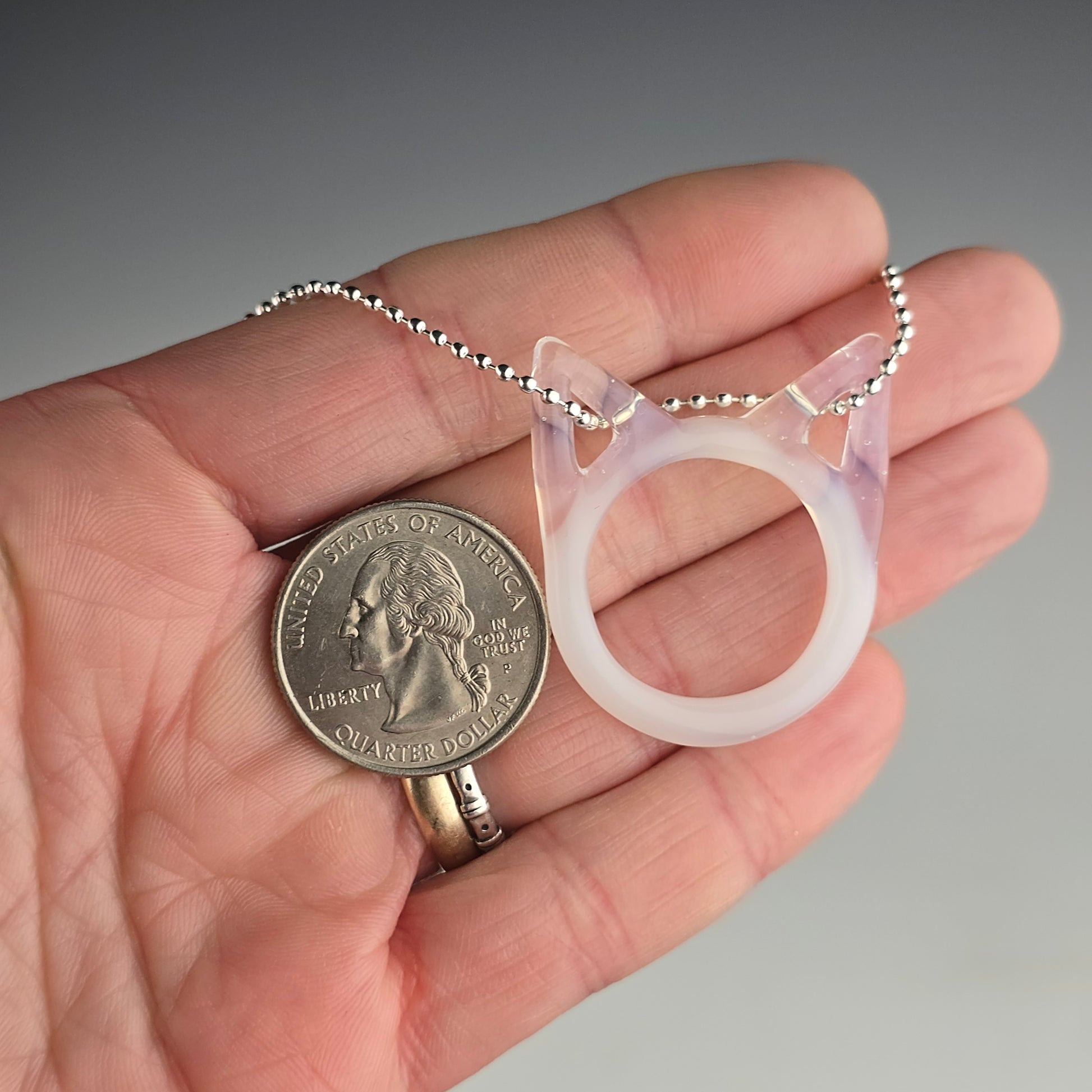 All Kitty Face pendants are individually handcrafted from COE 33 borosilicate glass—no molds are used. Each piece is shaped by hand using graphite tools and then kiln-annealed at 1050°F to ensure strength and durability.