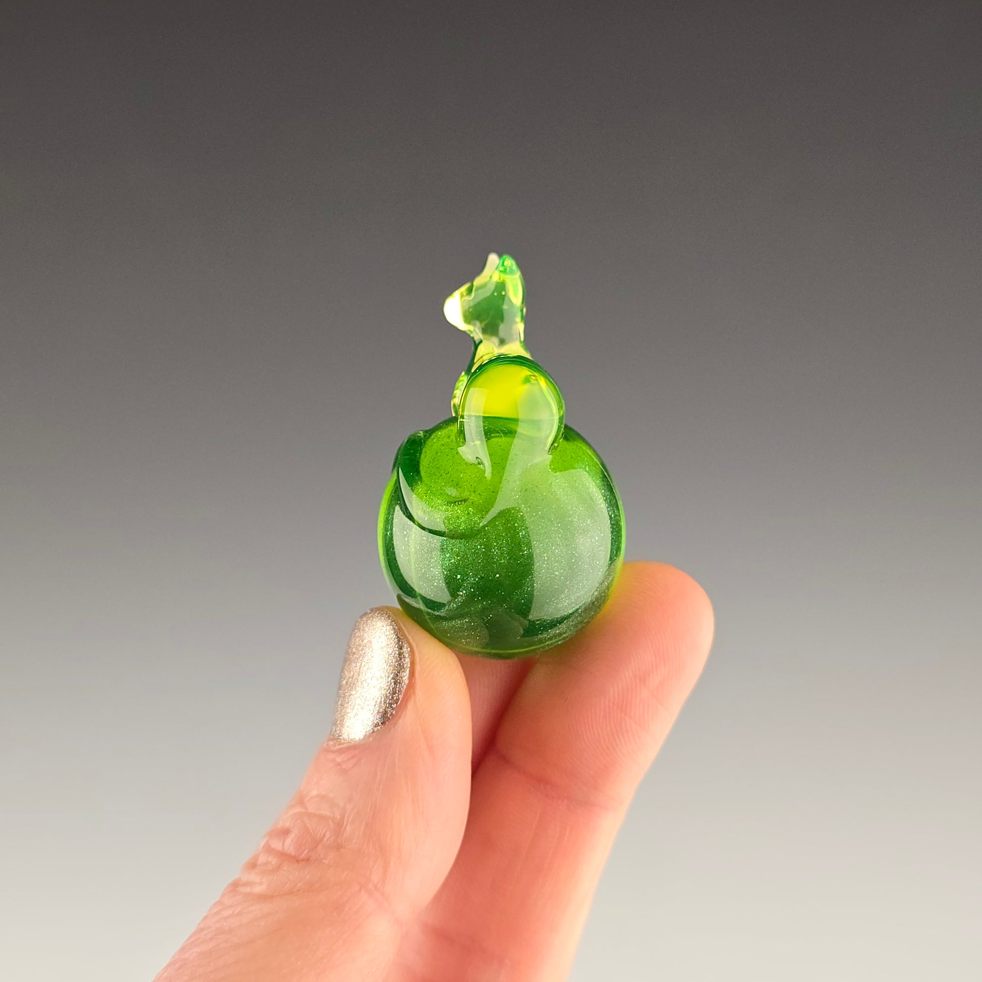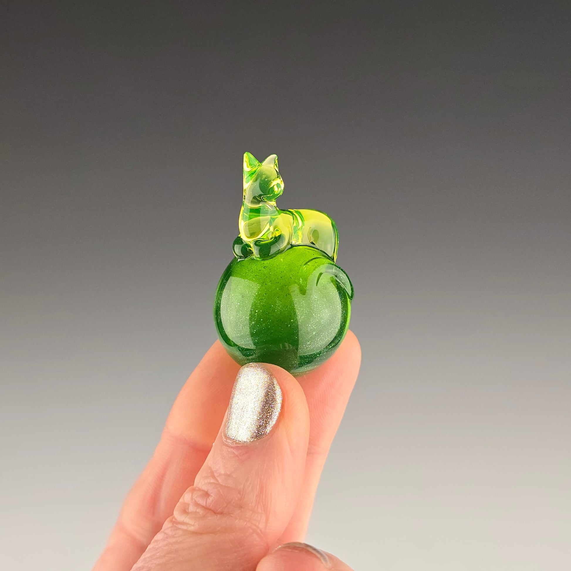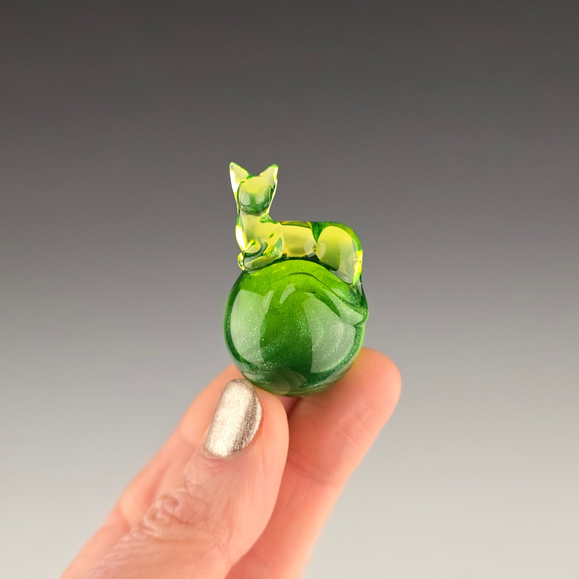 This 25mm Meowble is made with Green Stardust over UV reactive Ion & the Loaf is made of UV reactive Ion, so they both glow green under UV lighting.