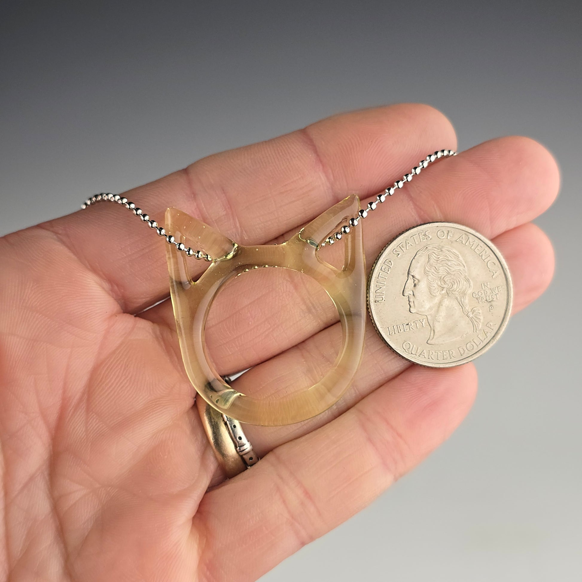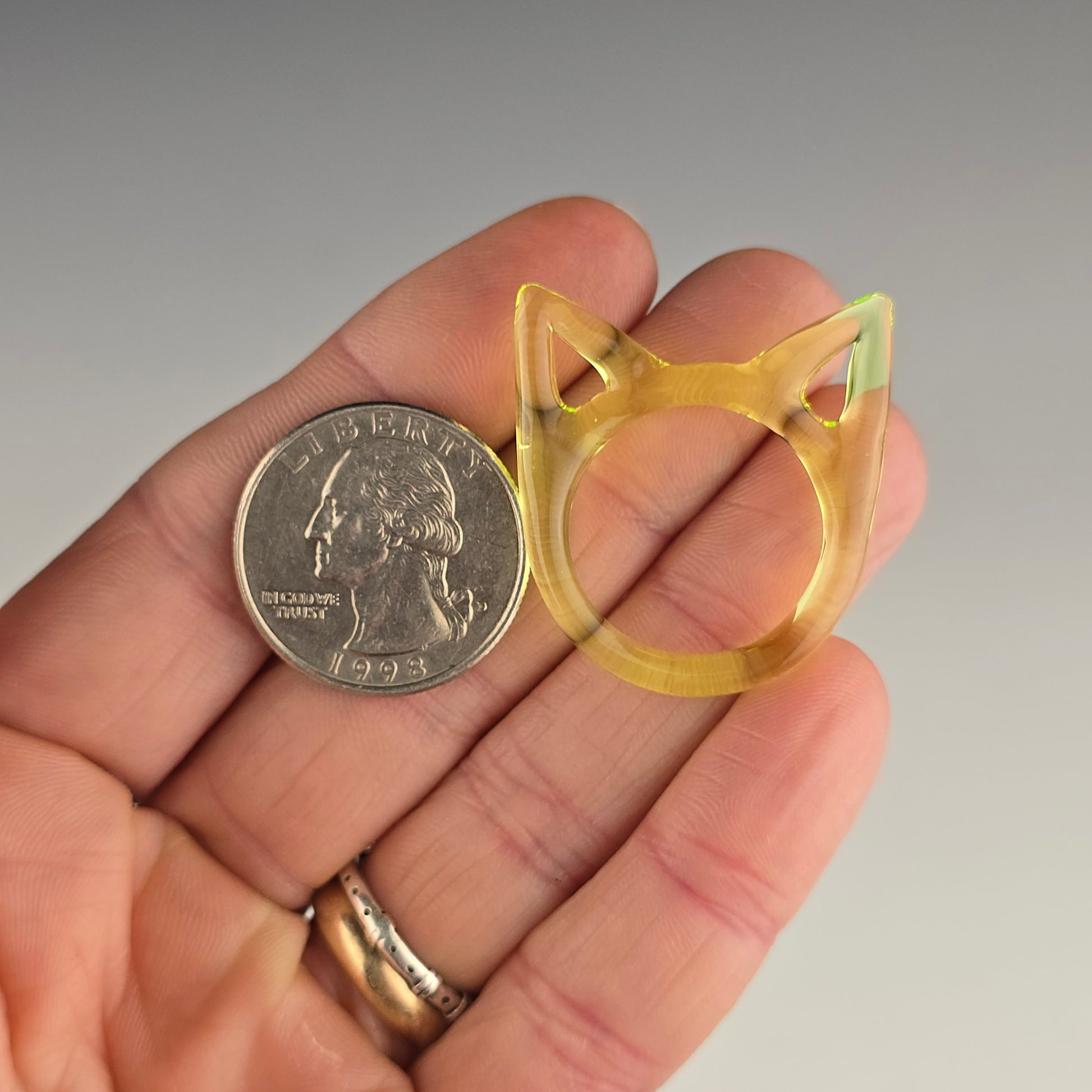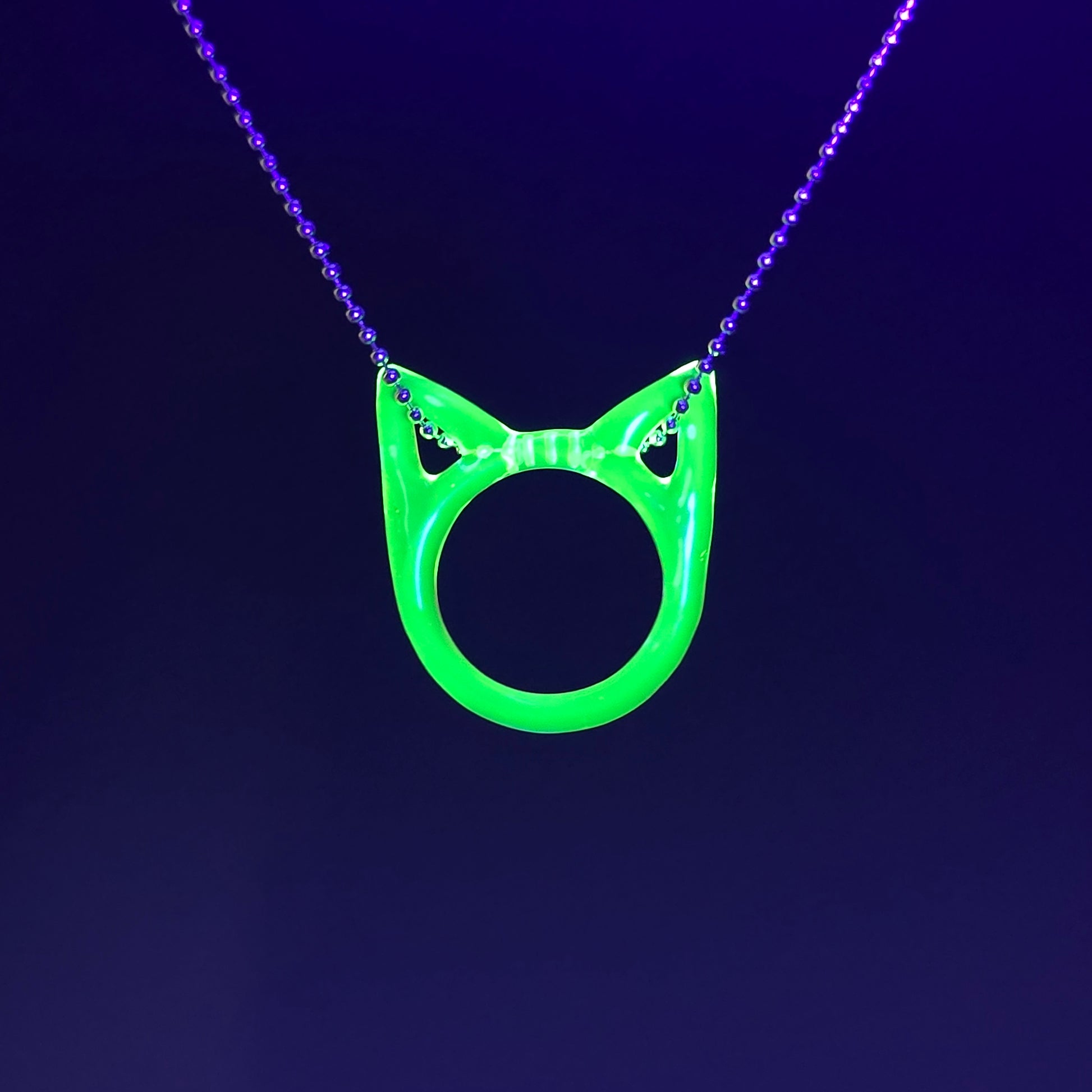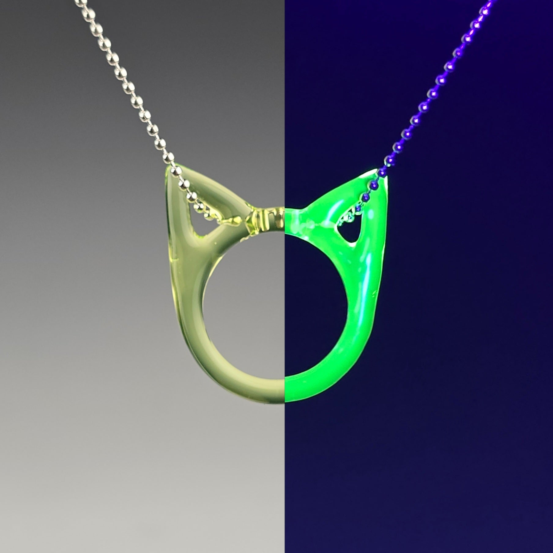 Made with UV reactive Ion by Molten Aura so this Kitty Face glows bright green under UV lighting. See photos for size reference.