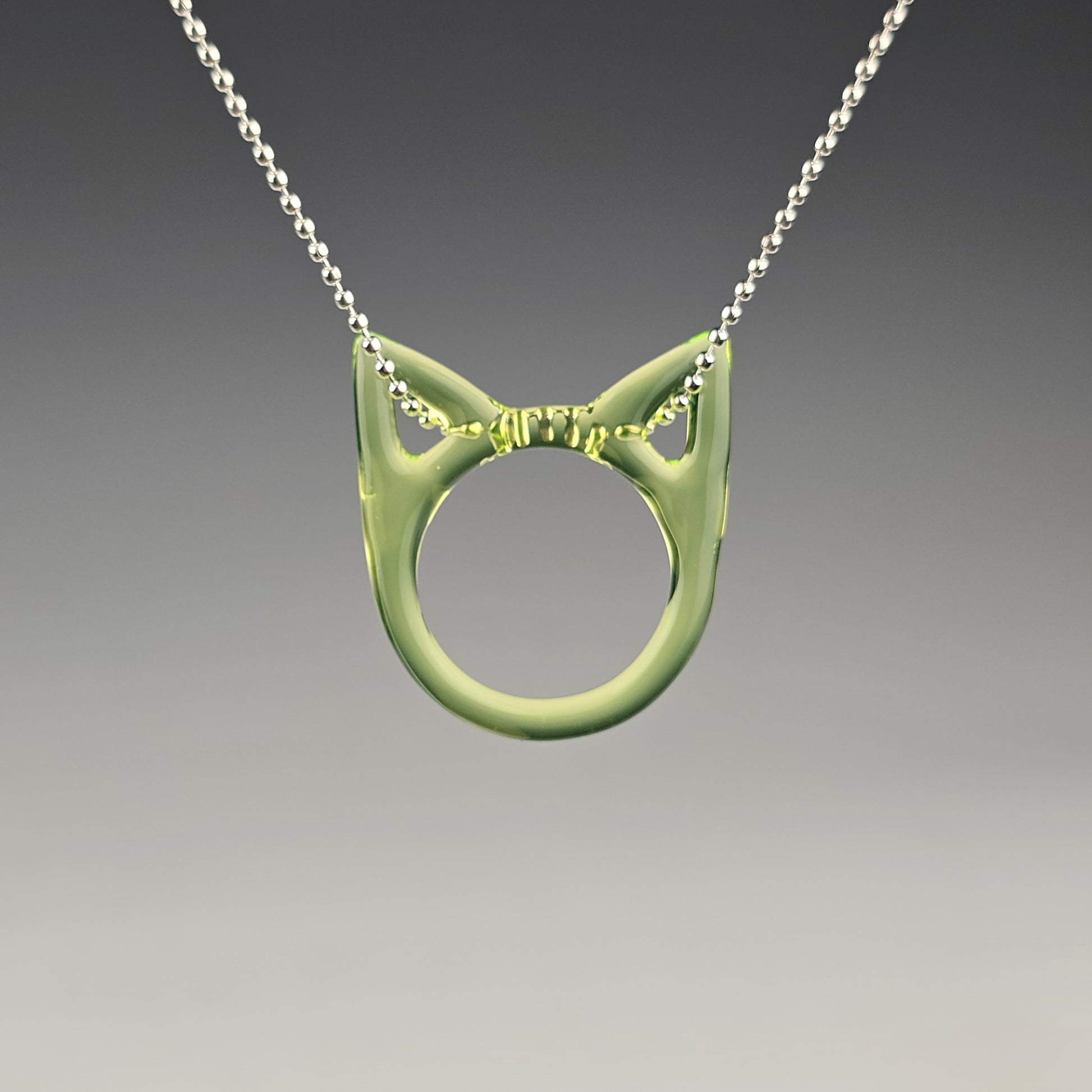 All Kitty Face pendants are individually handcrafted from COE 33 borosilicate glass—no molds are used. Each piece is shaped by hand using graphite tools and then kiln-annealed at 1050°F to ensure strength and durability.