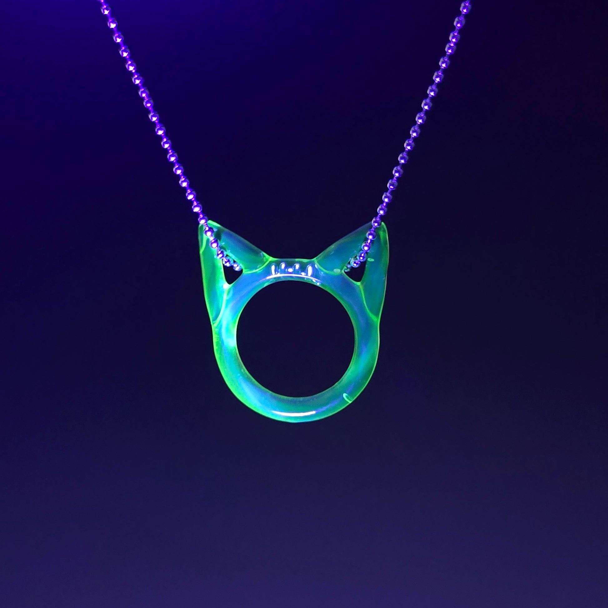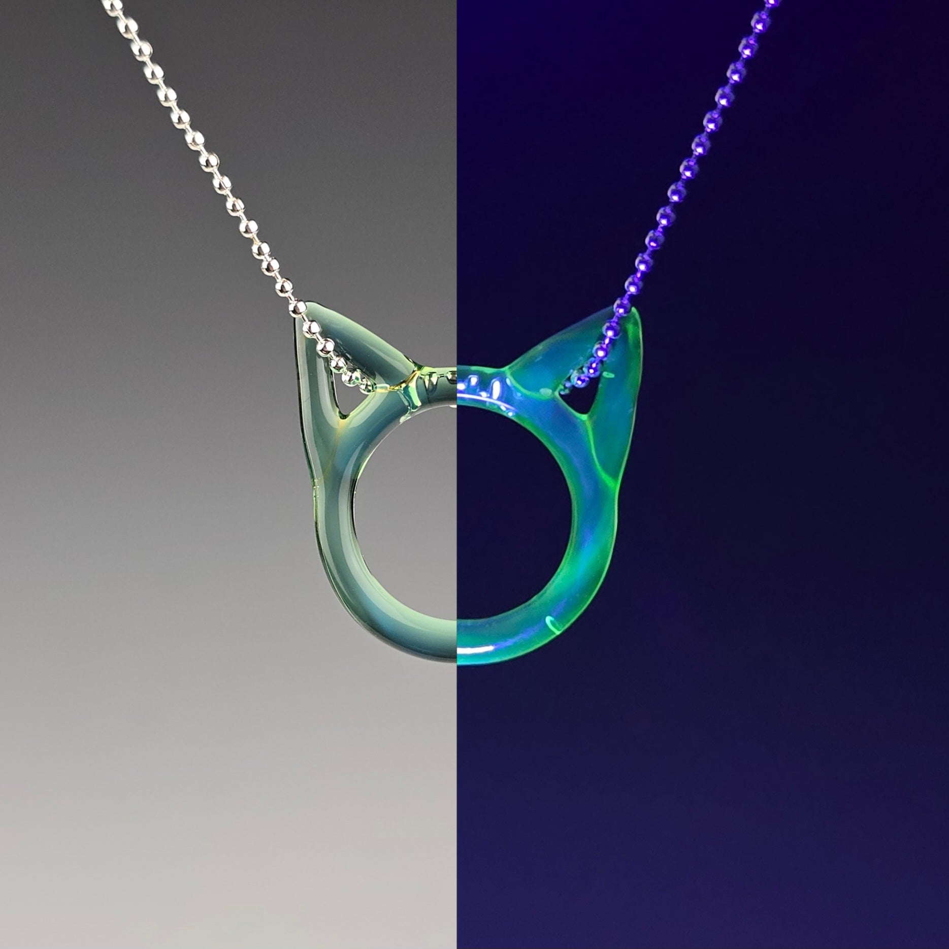 All Kitty Face pendants are individually handcrafted from COE 33 borosilicate glass—no molds are used. Each piece is shaped by hand using graphite tools and then kiln-annealed at 1050°F to ensure strength and durability.