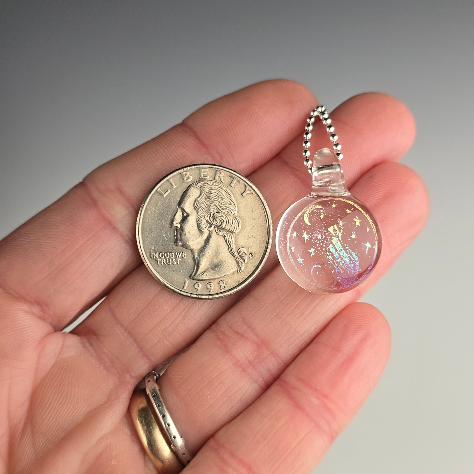 Comes boxed with a ball chain & sticker. If you’d like a different color than the one shown or prefer a colored hemp cord instead, please let me know in the special instruction box at the bottom of the cart page before you checkout.