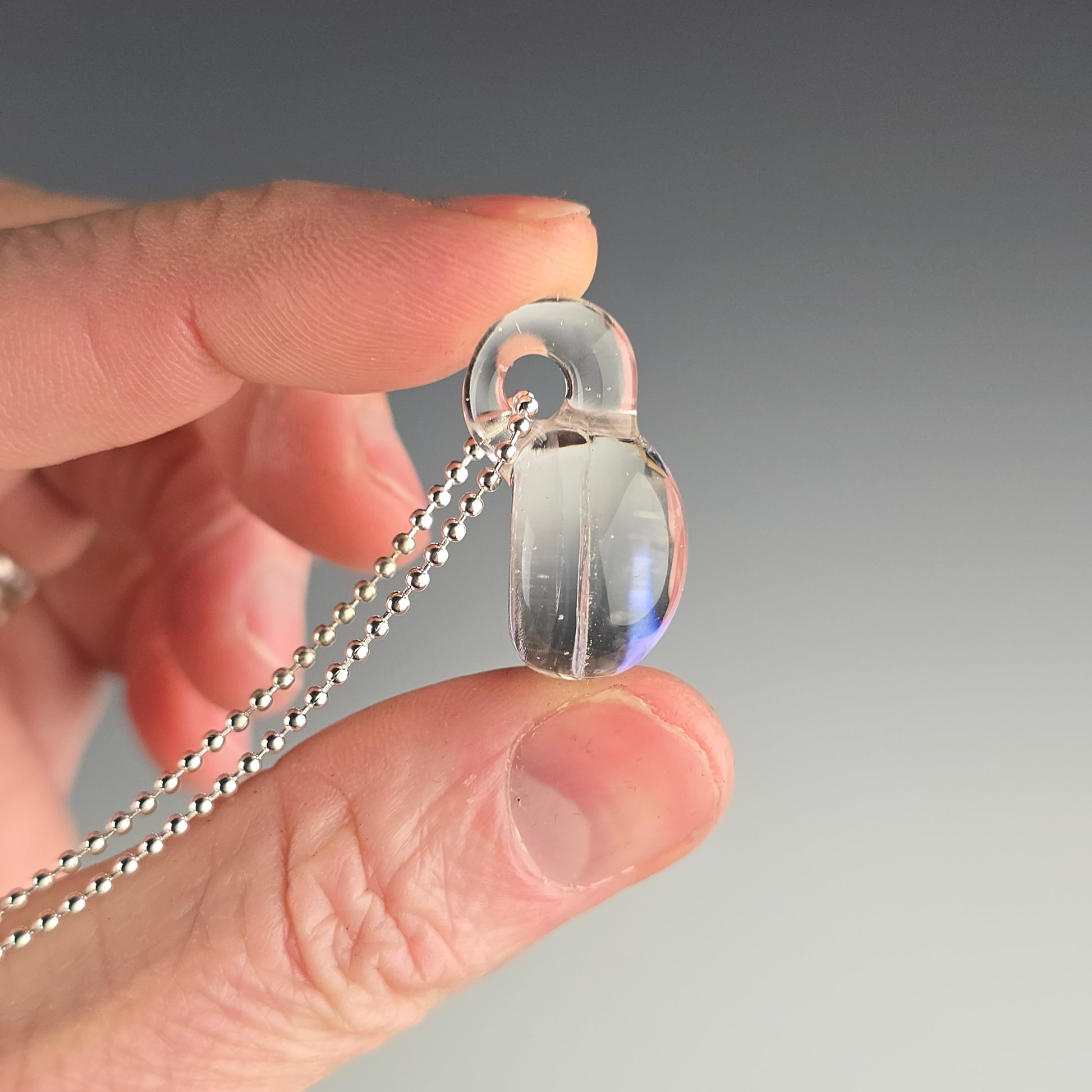 Comes boxed with a ball chain & sticker. If you’d like a different color than the one shown or prefer a colored hemp cord instead, please let me know in the special instruction box at the bottom of the cart page before you checkout.