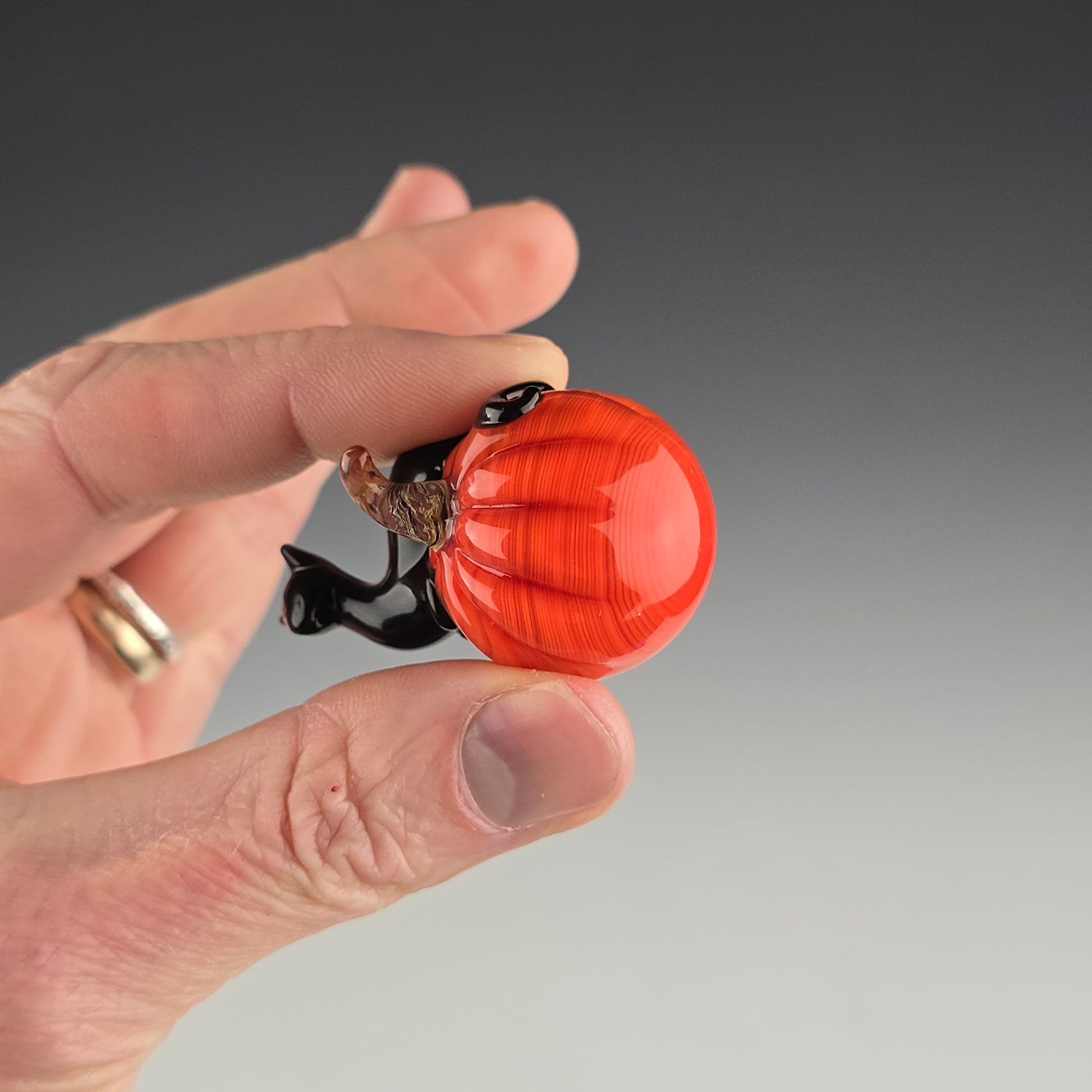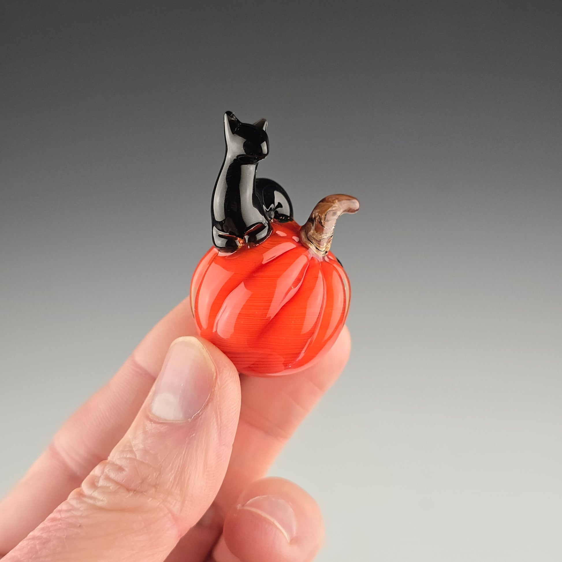 This 26mm Meowble is made with UV reactive Ion over Lava so it glows green under UV lighting. The Black Kitty Loaf is coated with UV reactive Nova, so it glows yellow.