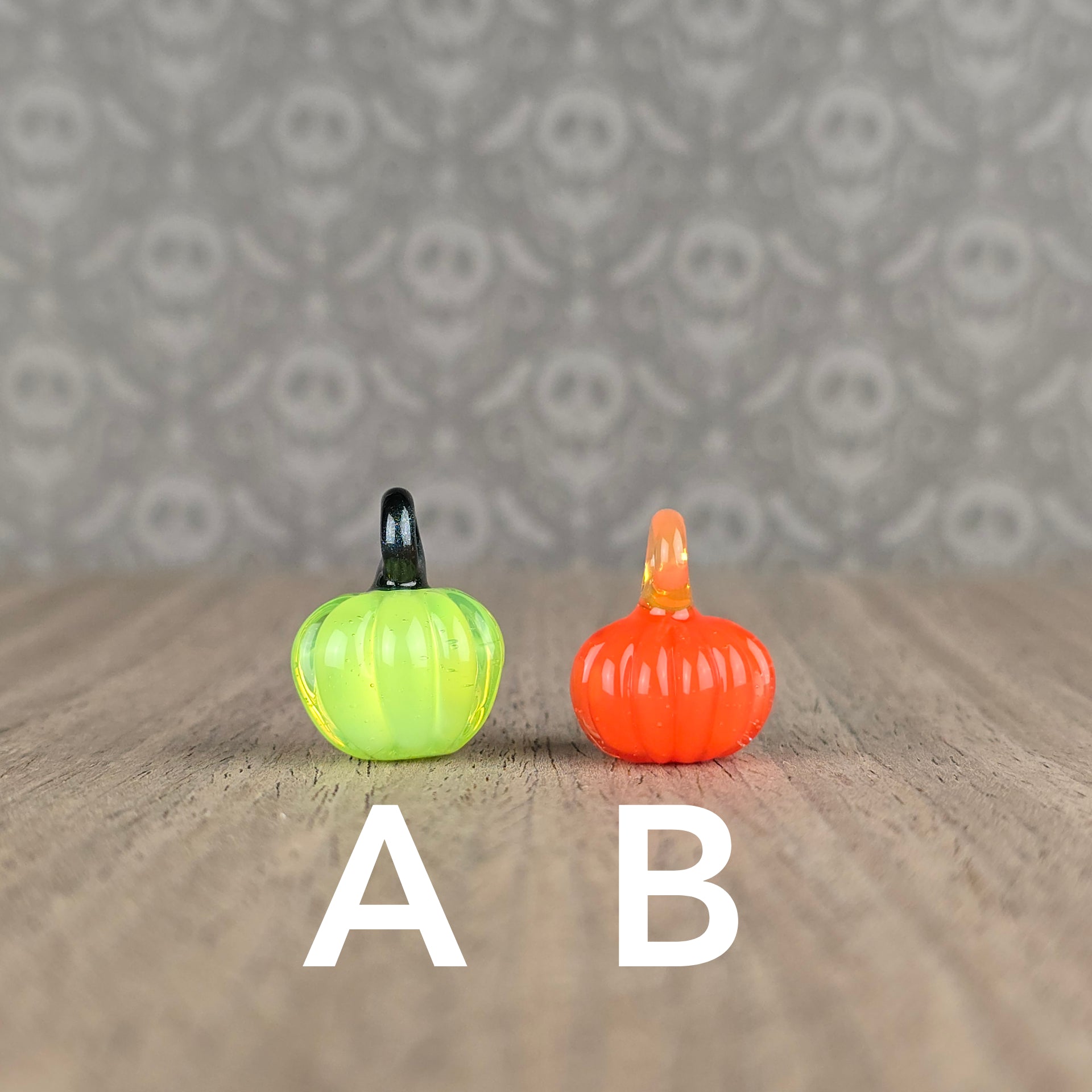 Listing is for one glass pumpkin pendant. See photos for identification reference and select specific pumpkin from available stock. See photos for size reference.