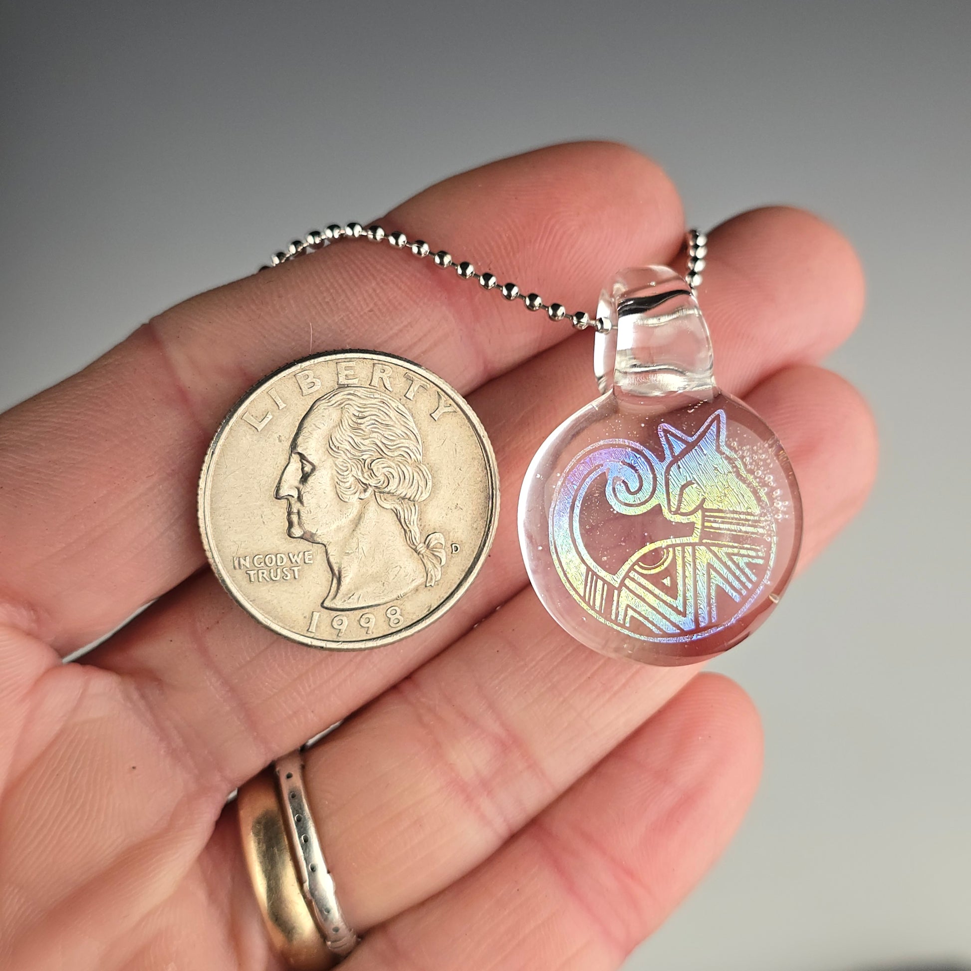 Comes boxed with a ball chain & sticker. If you’d like a different color than the one shown or prefer a colored hemp cord instead, please let me know in the special instruction box at the bottom of the cart page before you checkout.